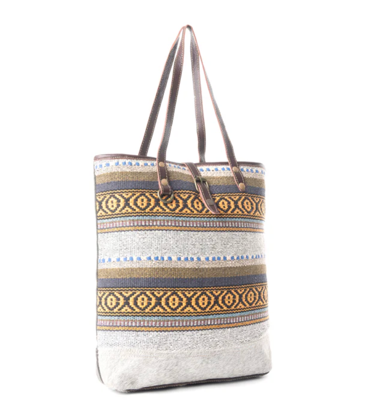With an excellent rug design, this tote bag is adorned with earth tones in a modest and elegant way. Enough space to accommodate your essentials, this bag is perfect for everyday use