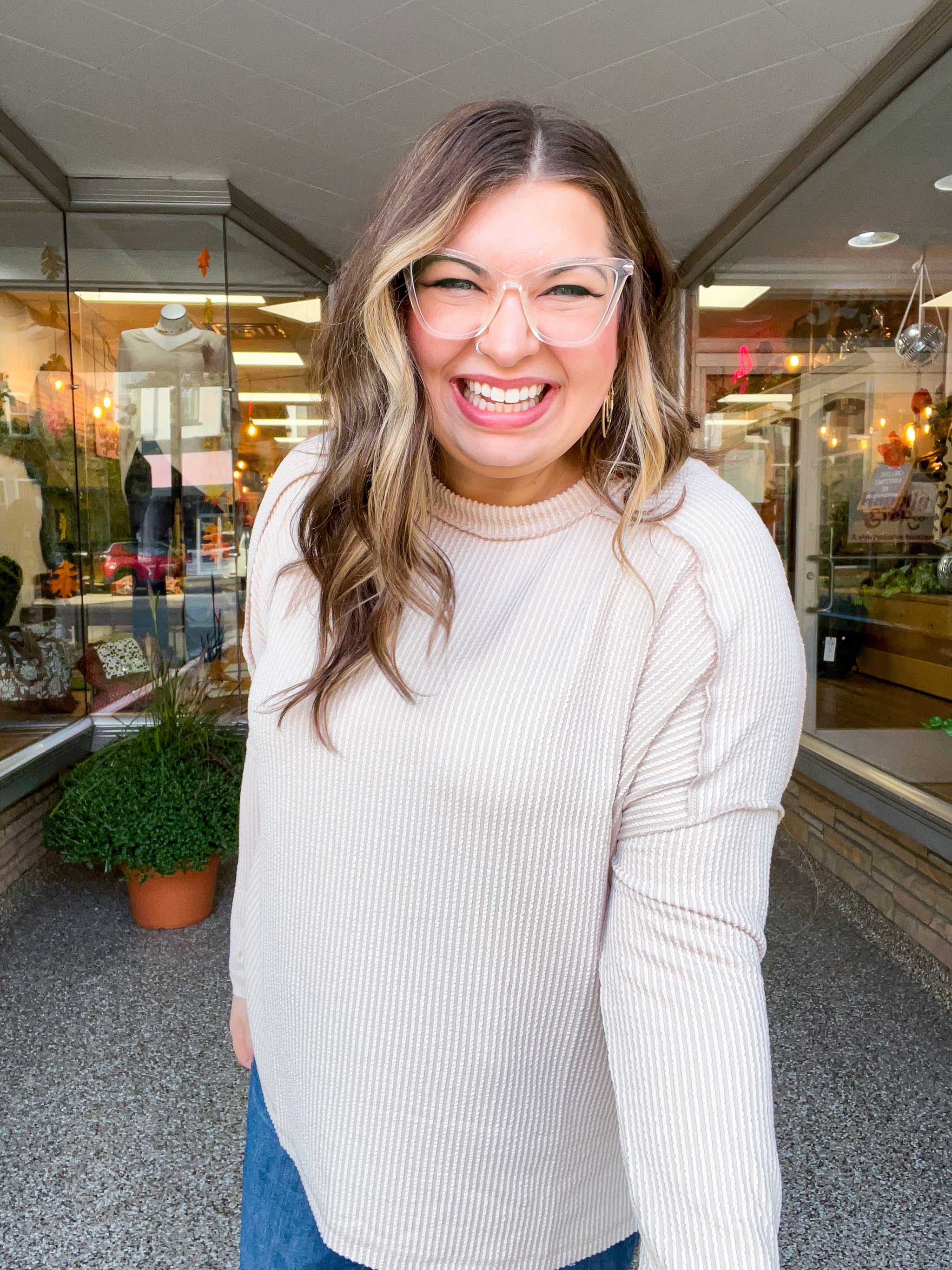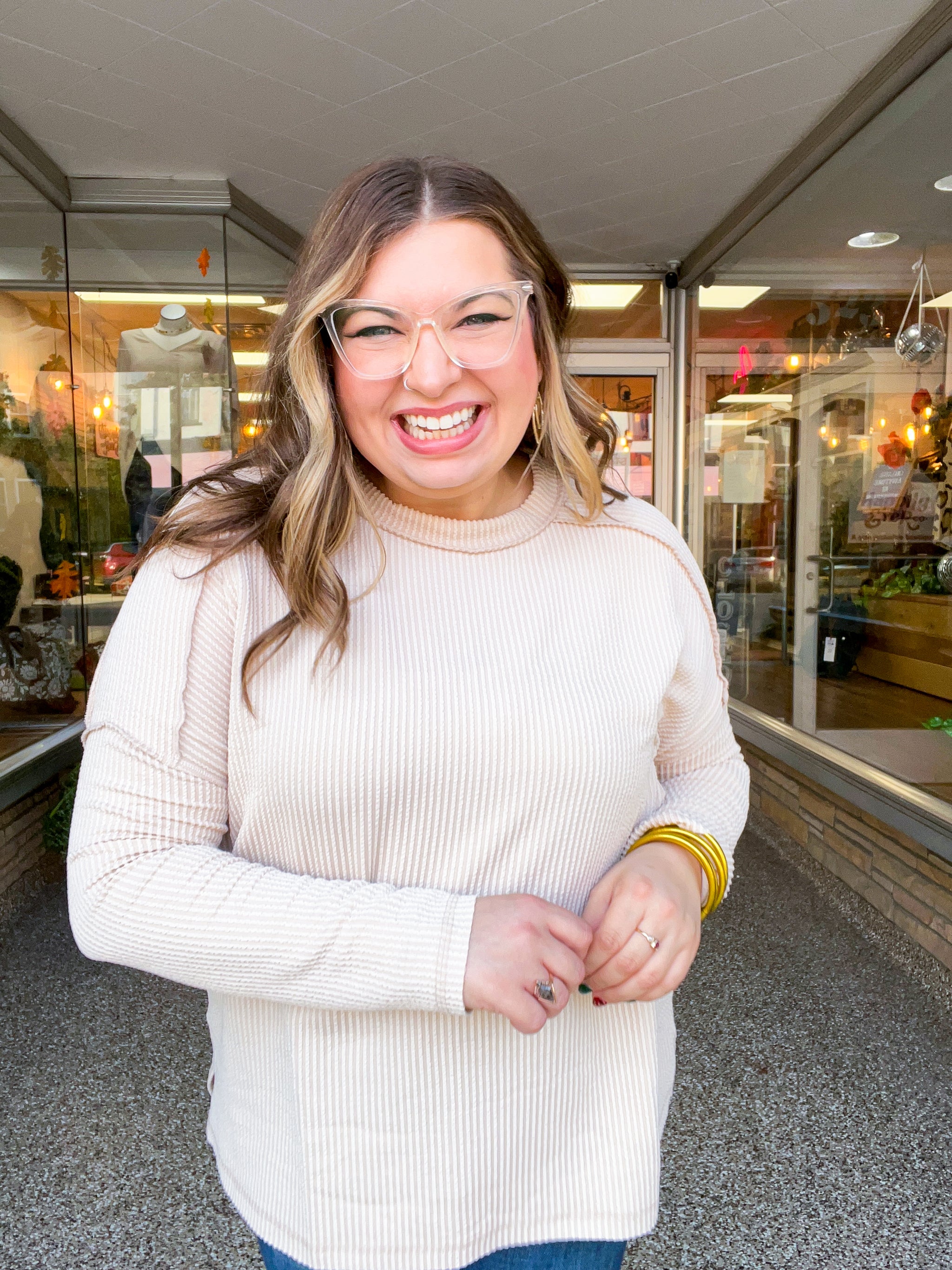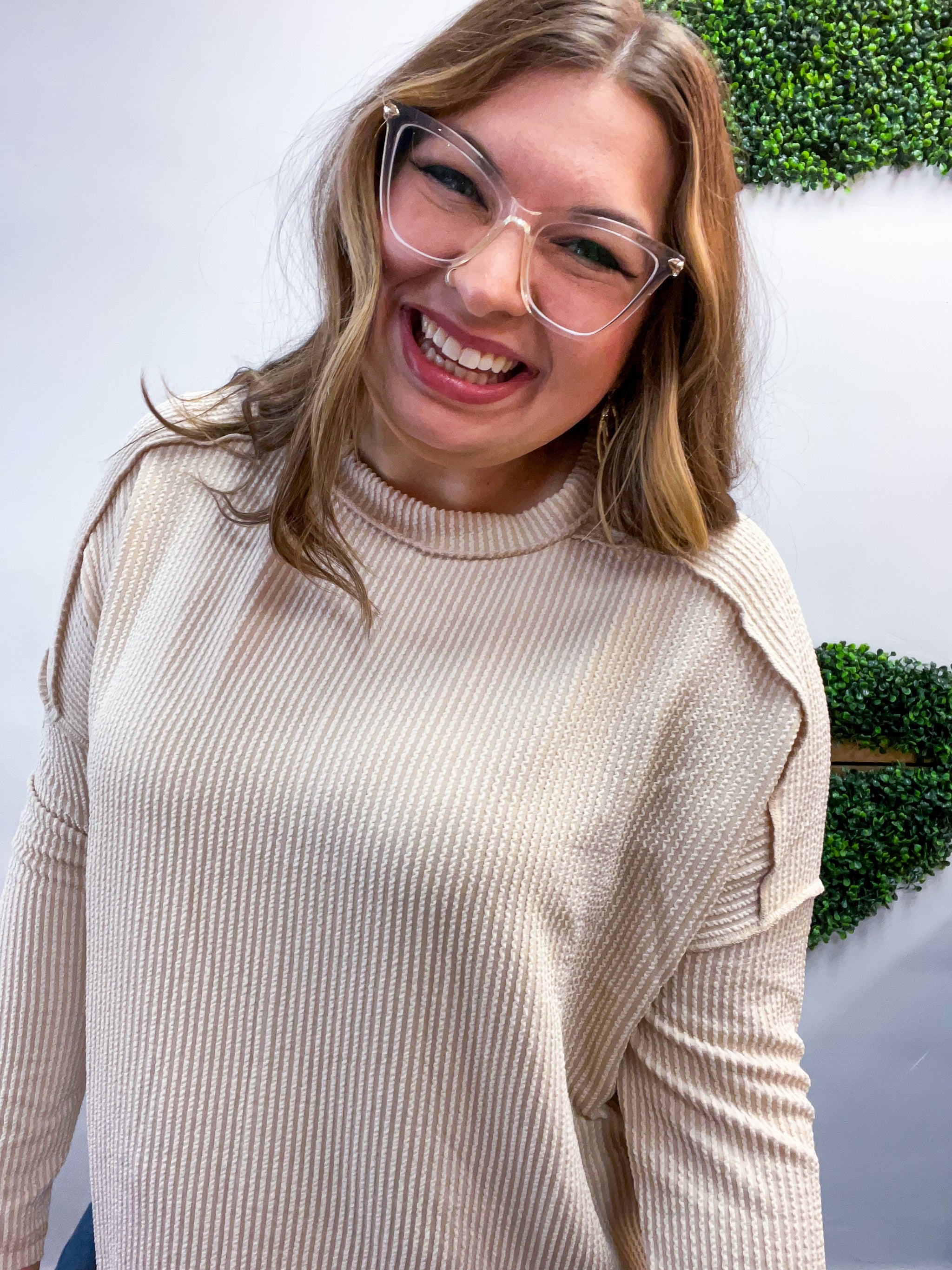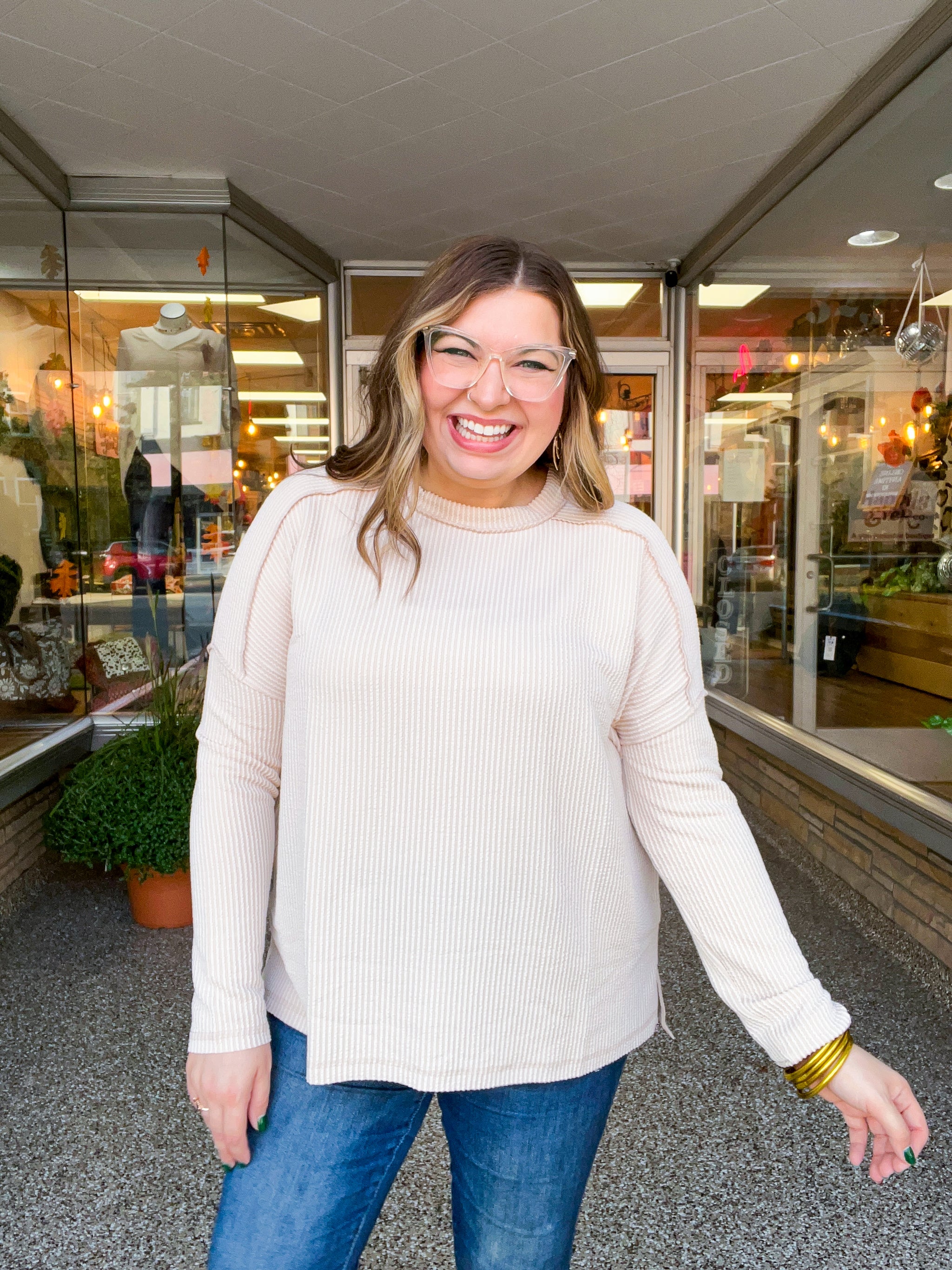 The Textured Take Raised Rib Long Sleeve Top in Sand Beige