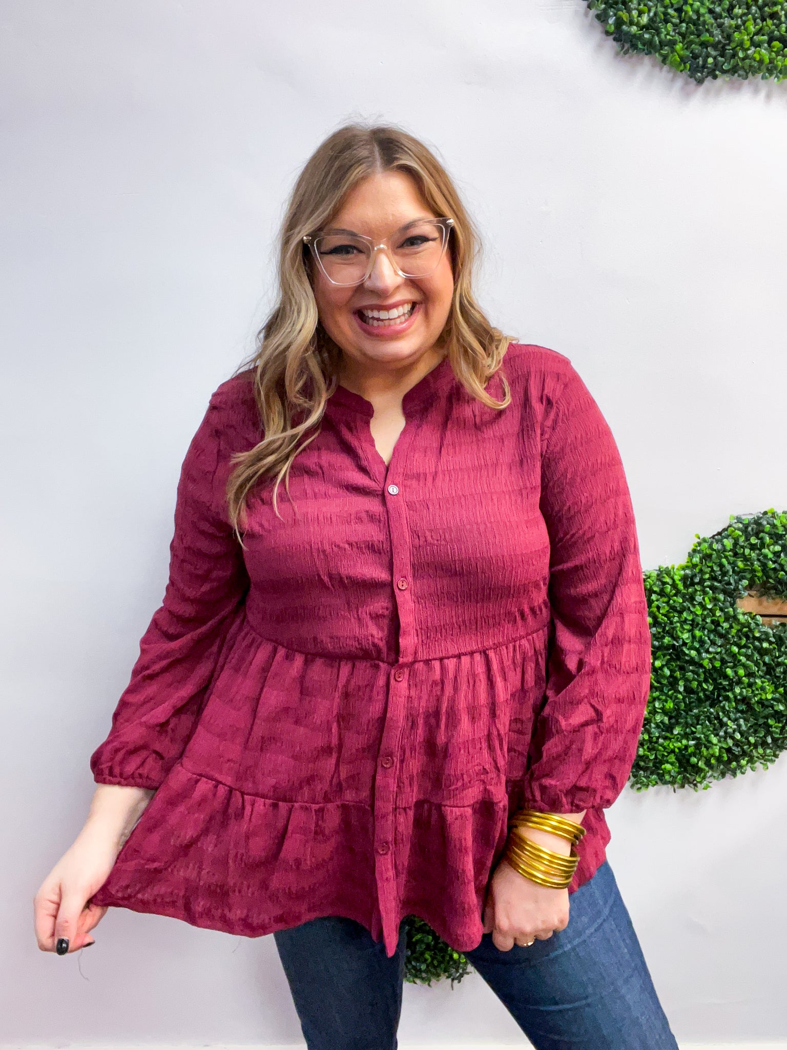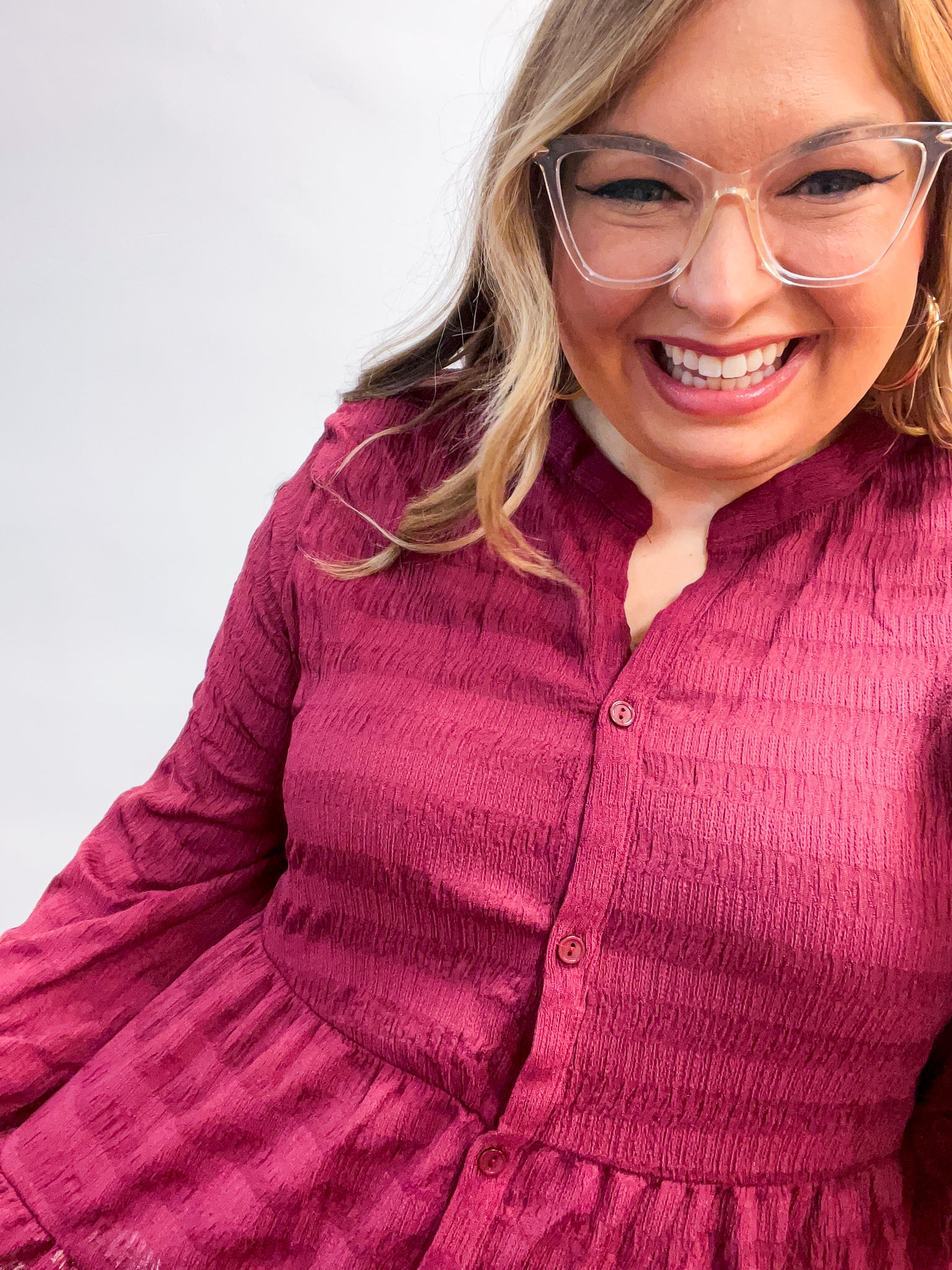 The Buttoned Bliss Tiered Top is the perfect mix of comfort and charm—an easygoing piece your fall wardrobe’s been waiting for. With its button-down front, flowy tiered silhouette, and relaxed fit, it’s designed for days when you want to feel comfy but still look effortlessly put together.