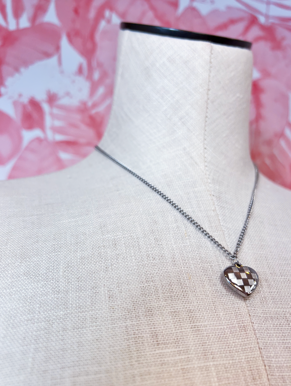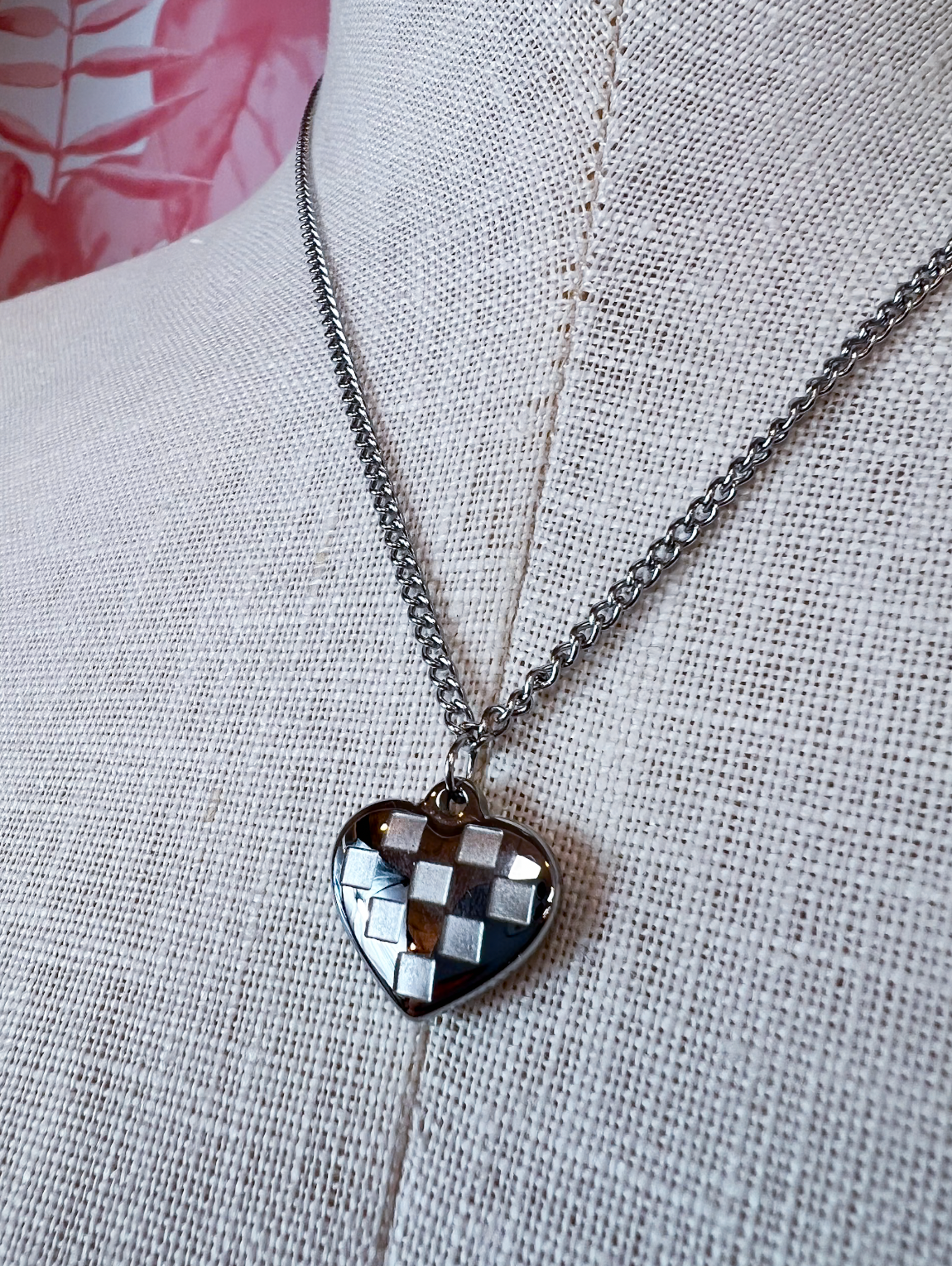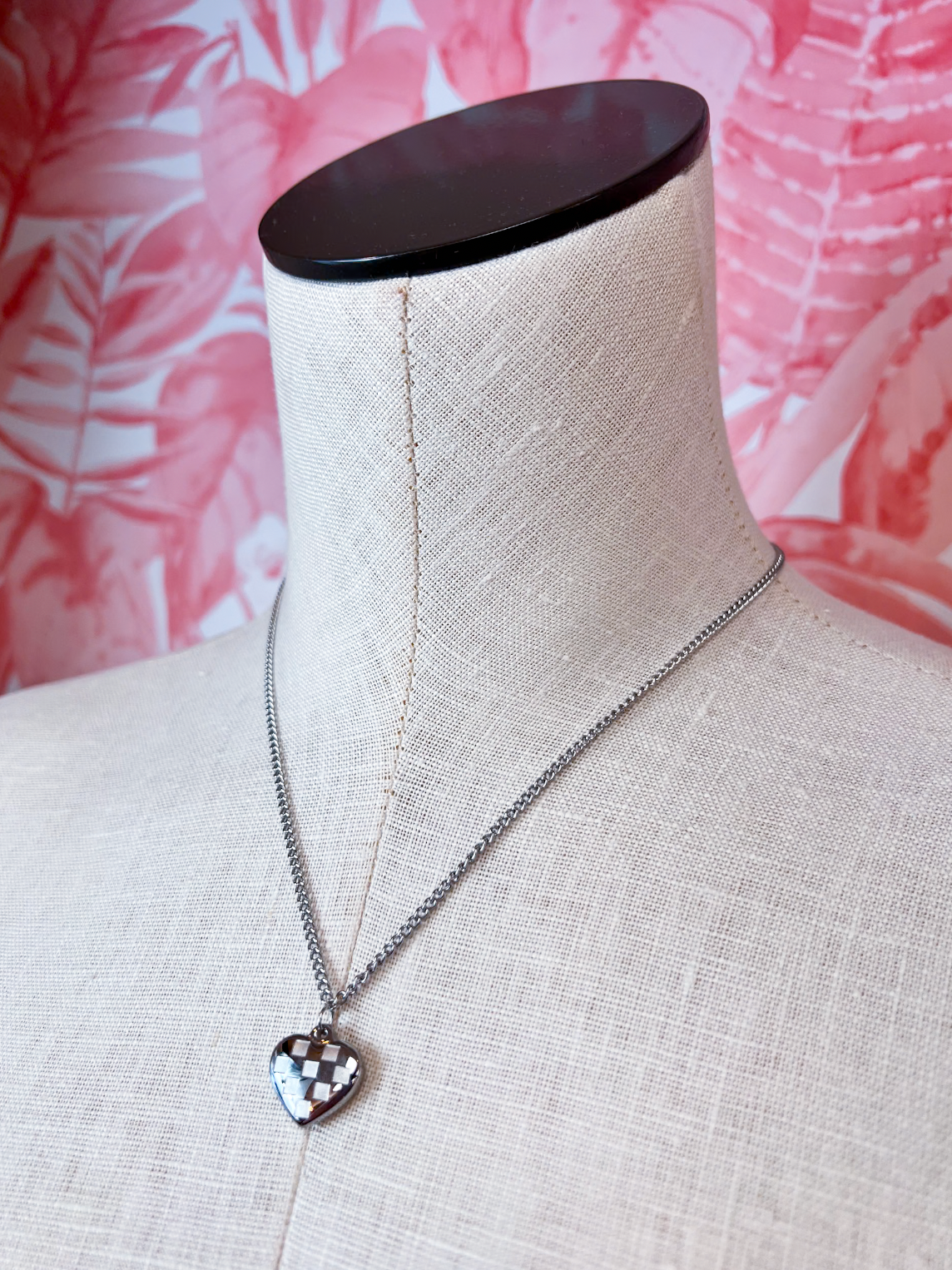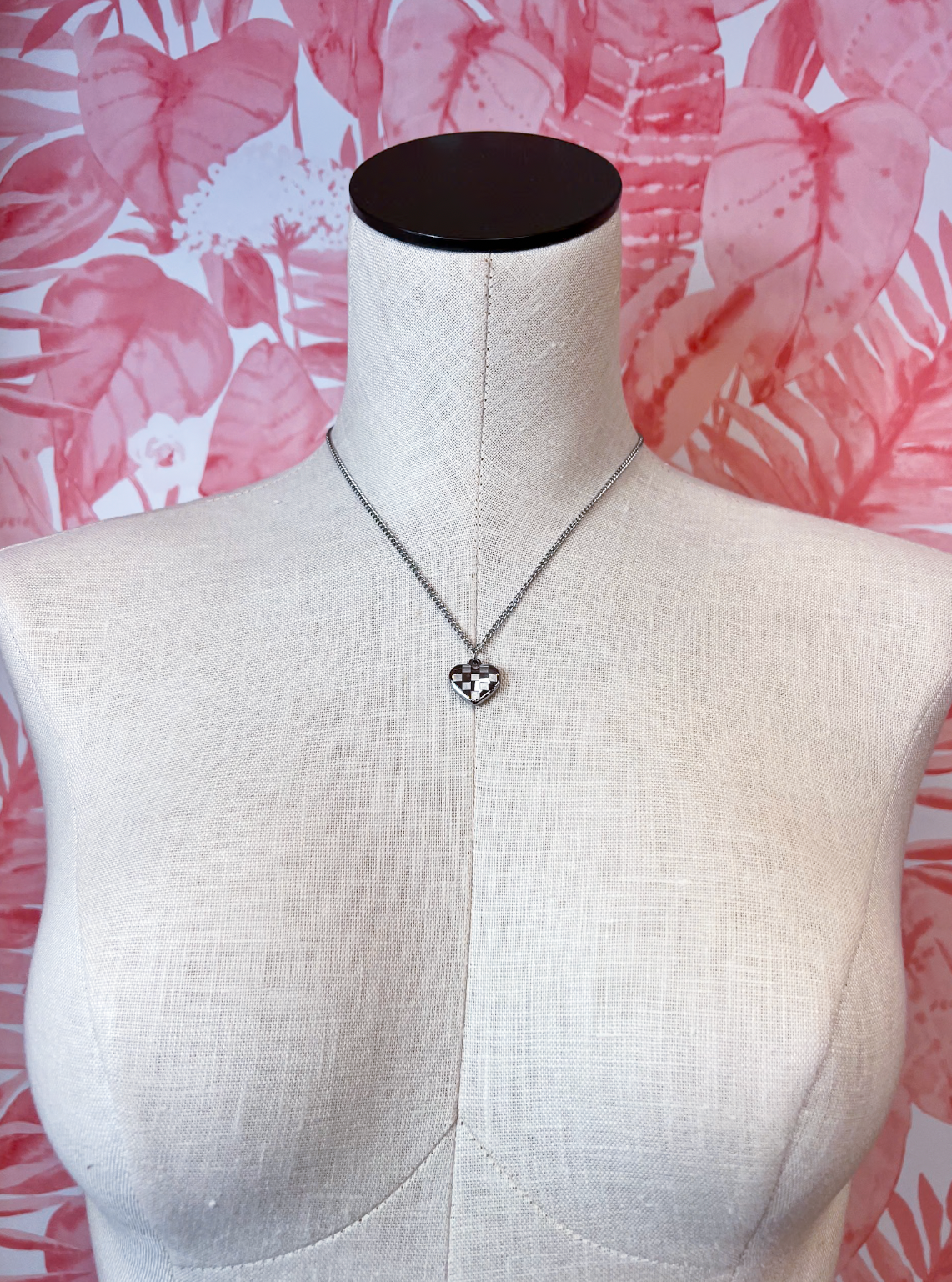 Stainless Steel Tarnish Free Checker Heart Necklace in Silver *Final Sale*