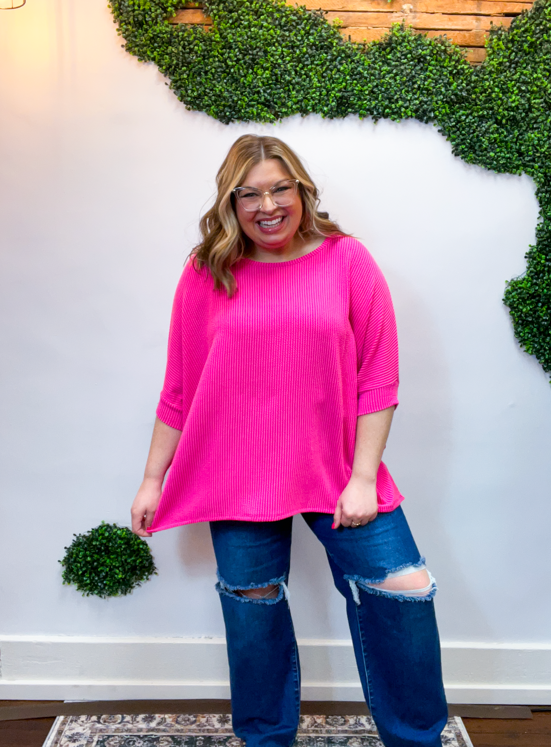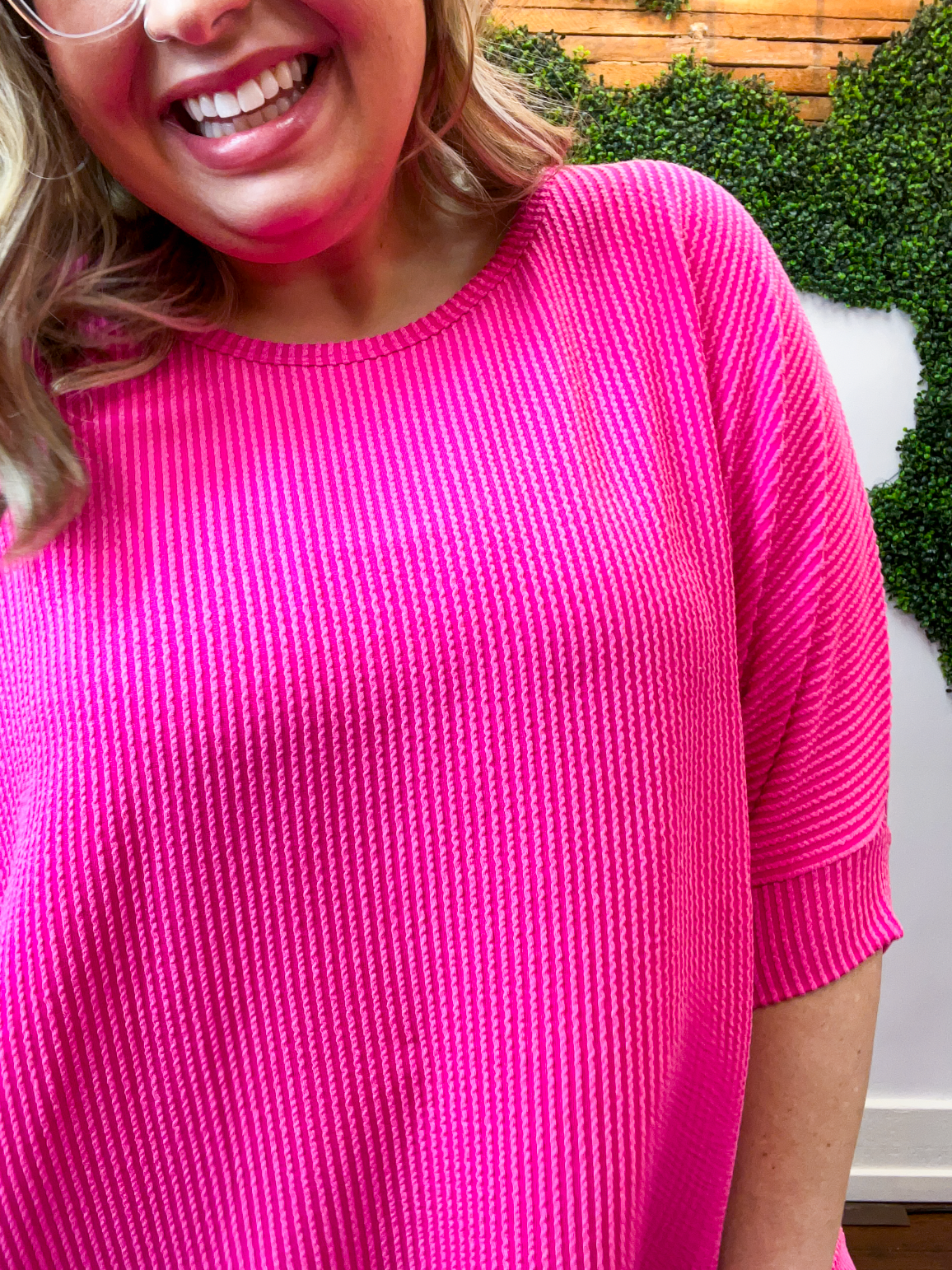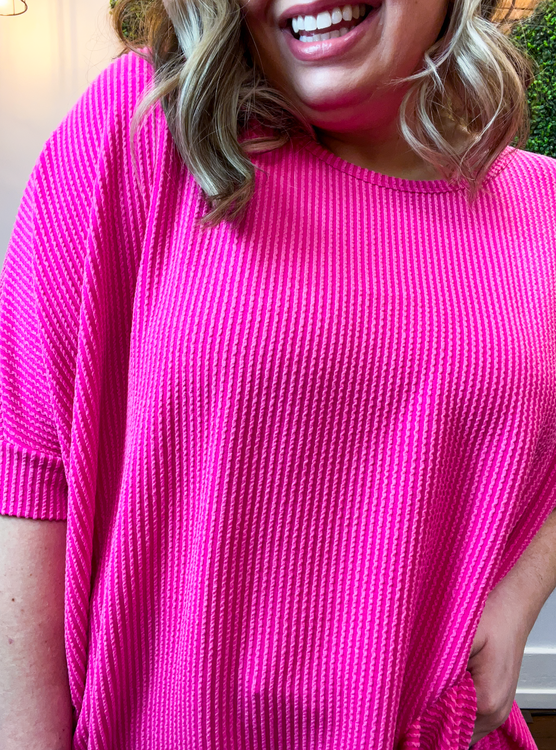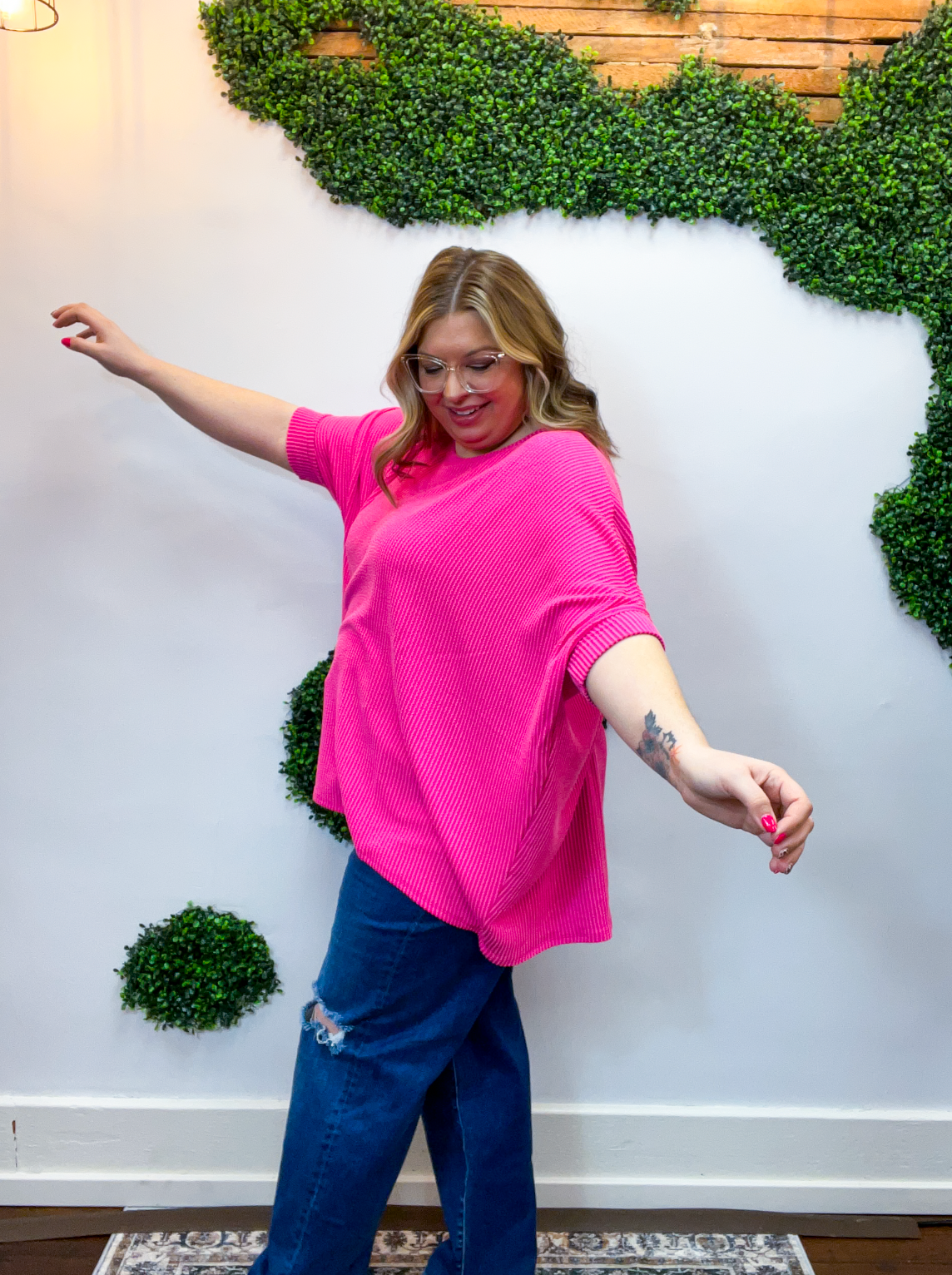 Lightweight, breathable, and just a touch elevated, this top feels comfy enough for lounging yet polished enough for heading out. The raised rib knit gives it a little extra dimension, making it one of those simple pieces that still feels special. Pair it with jeans, leggings, or even shorts when the Midwest decides to change seasons midweek — it’s cute, comfy, and ready for whatever your day brings.