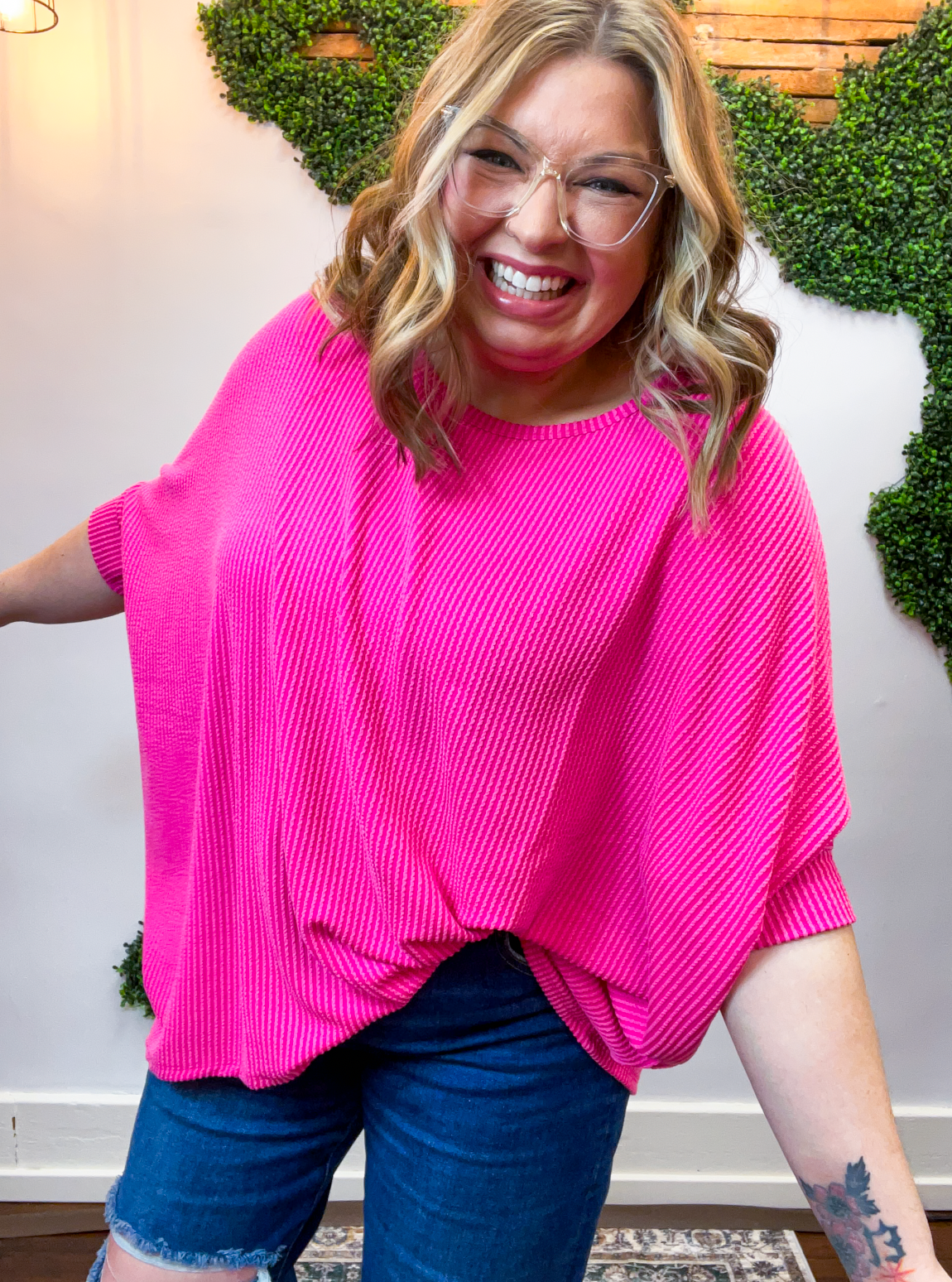 The Ribbed Breeze Batwing Top is that effortless, “throw it on and feel amazing” kind of favorite you’ll reach for time and time again. With its soft, stretchy ribbed texture and flowy batwing sleeves, it drapes beautifully for that relaxed, easygoing look we all love.
