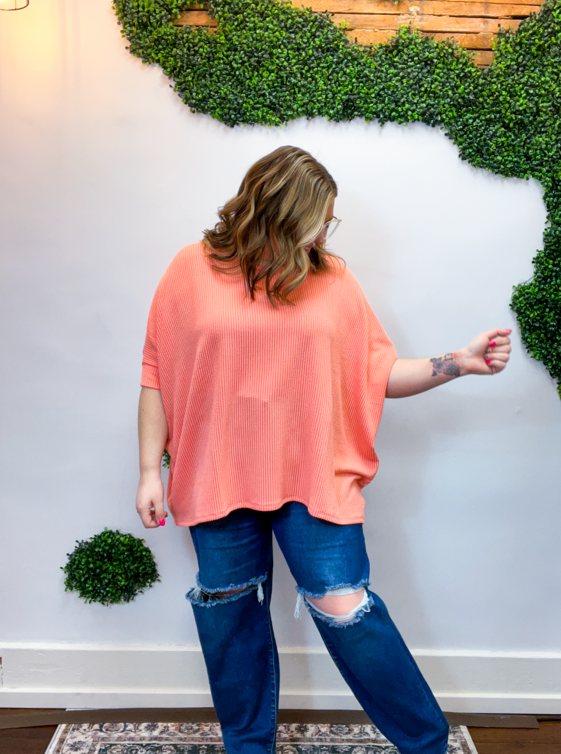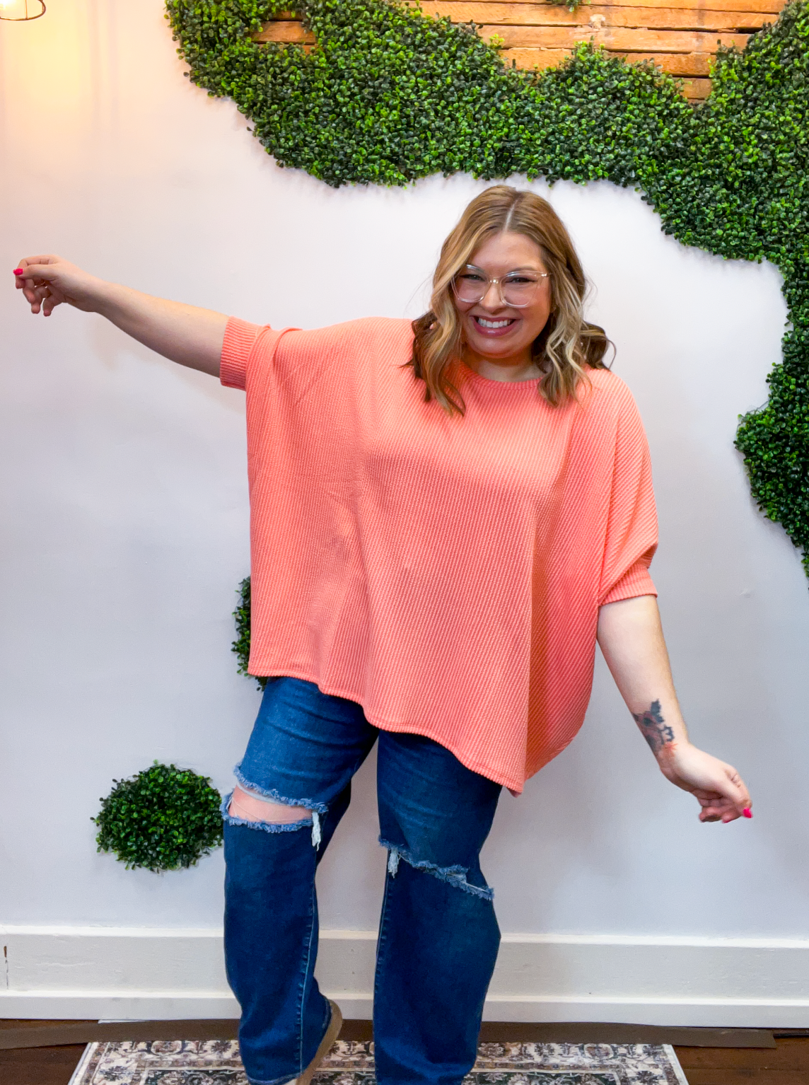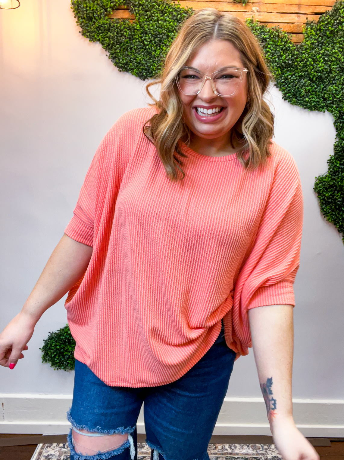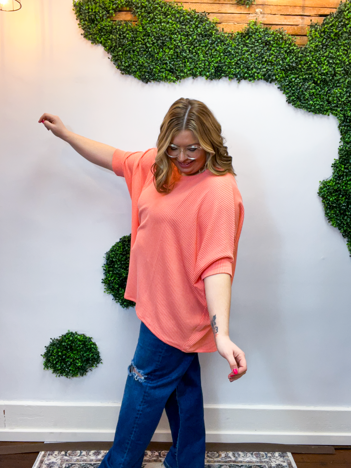 Lightweight, breathable, and just a touch elevated, this top feels comfy enough for lounging yet polished enough for heading out. The raised rib knit gives it a little extra dimension, making it one of those simple pieces that still feels special. Pair it with jeans, leggings, or even shorts when the Midwest decides to change seasons midweek — it’s cute, comfy, and ready for whatever your day brings.