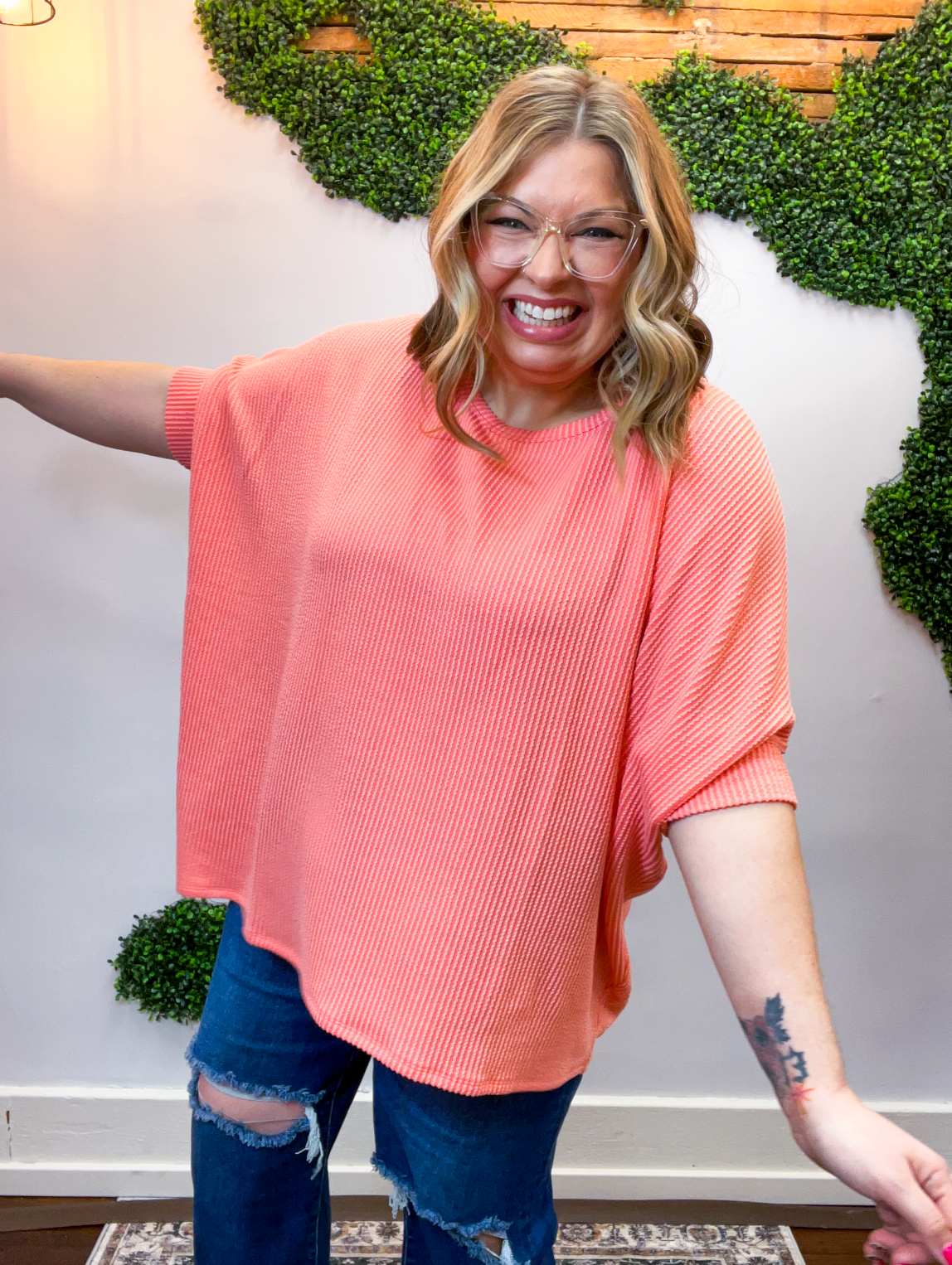 Ribbed Breeze Batwing Top in Coral