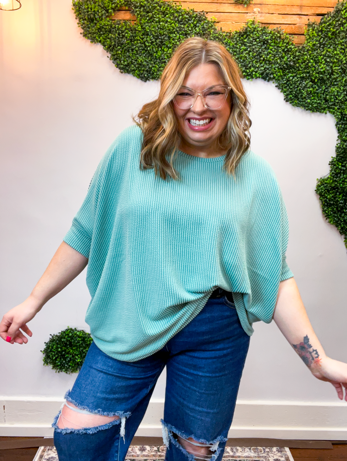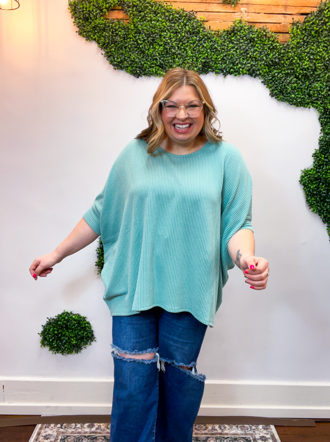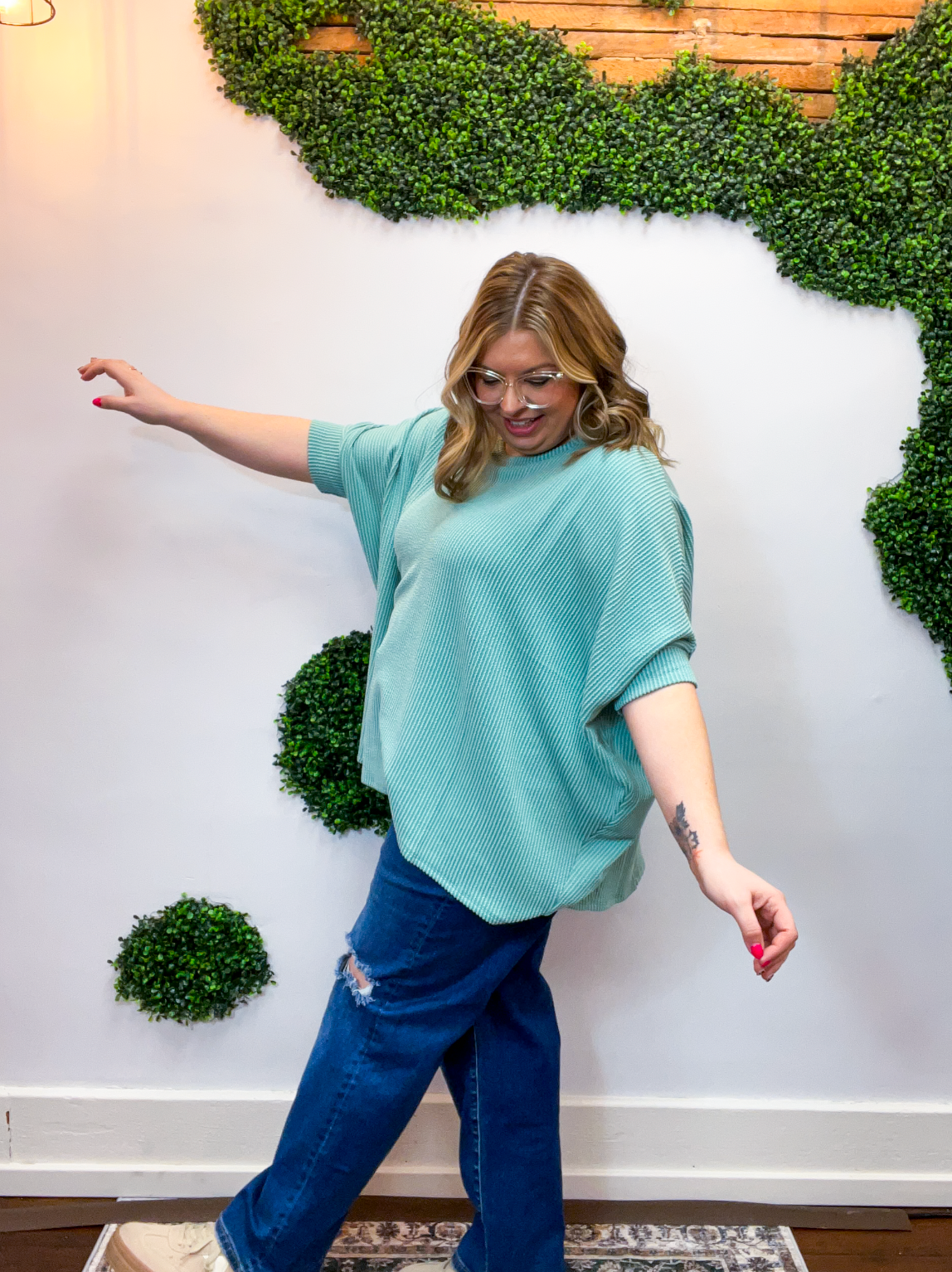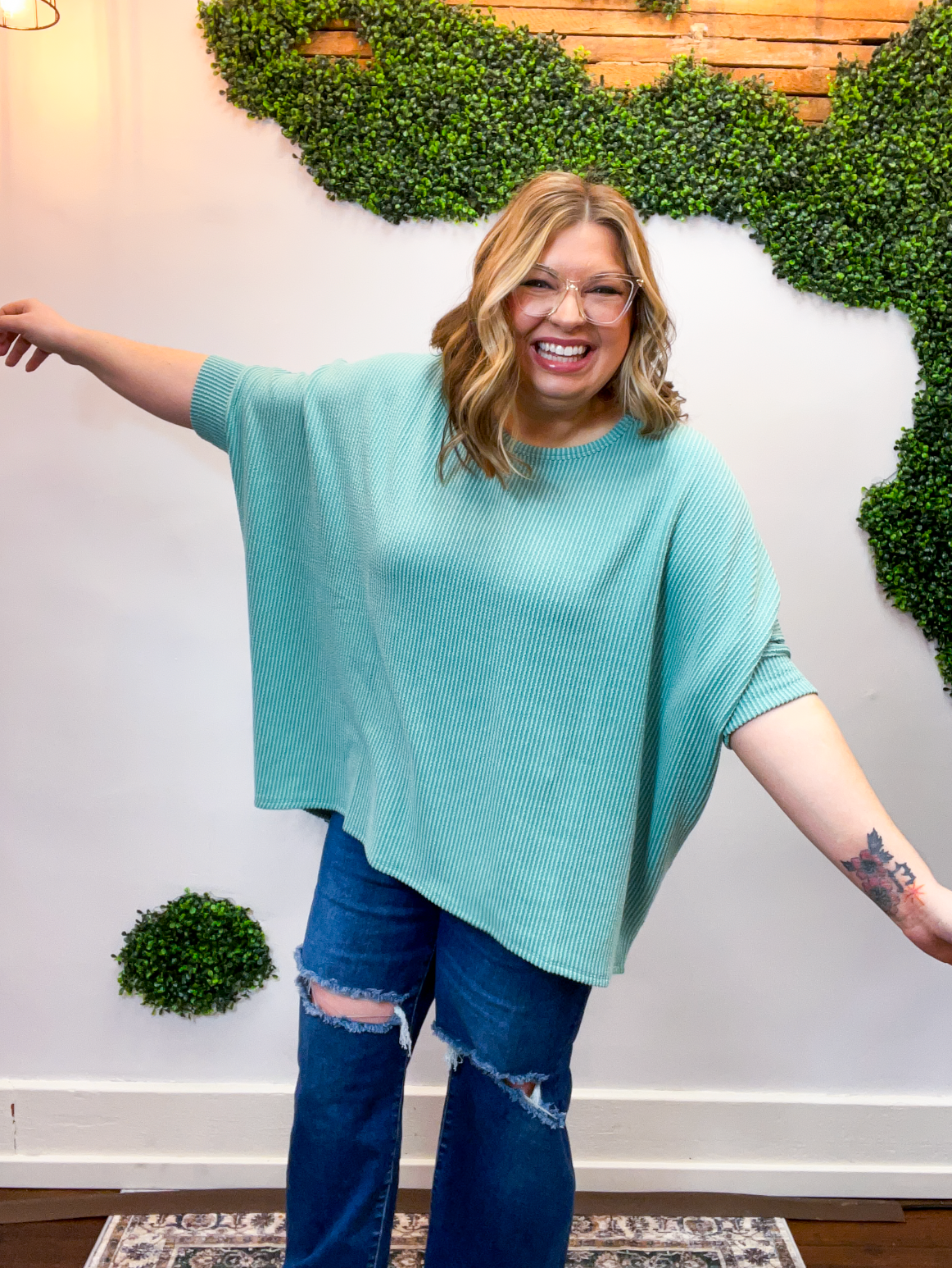 Ribbed Breeze Batwing Top in Jade