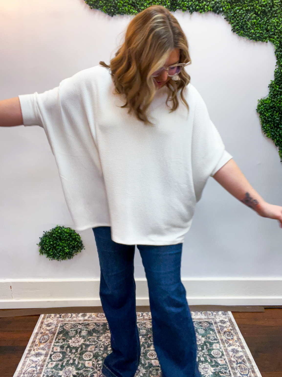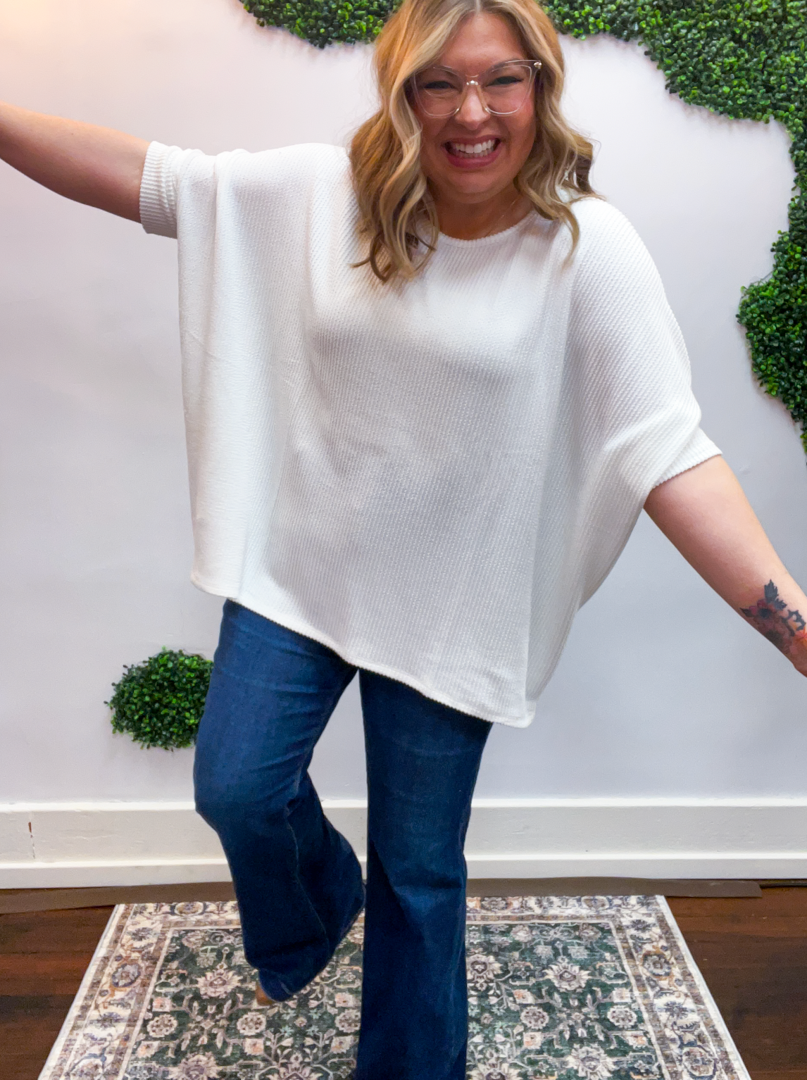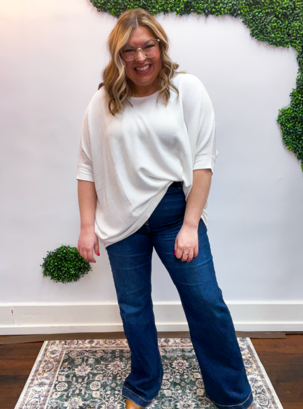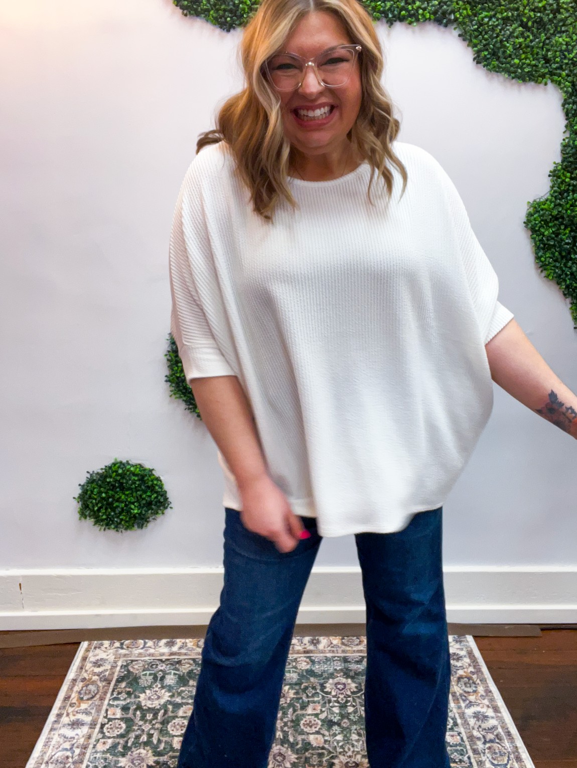 Lightweight, breathable, and just a touch elevated, this top feels comfy enough for lounging yet polished enough for heading out. The raised rib knit gives it a little extra dimension, making it one of those simple pieces that still feels special. Pair it with jeans, leggings, or even shorts when the Midwest decides to change seasons midweek — it’s cute, comfy, and ready for whatever your day brings.