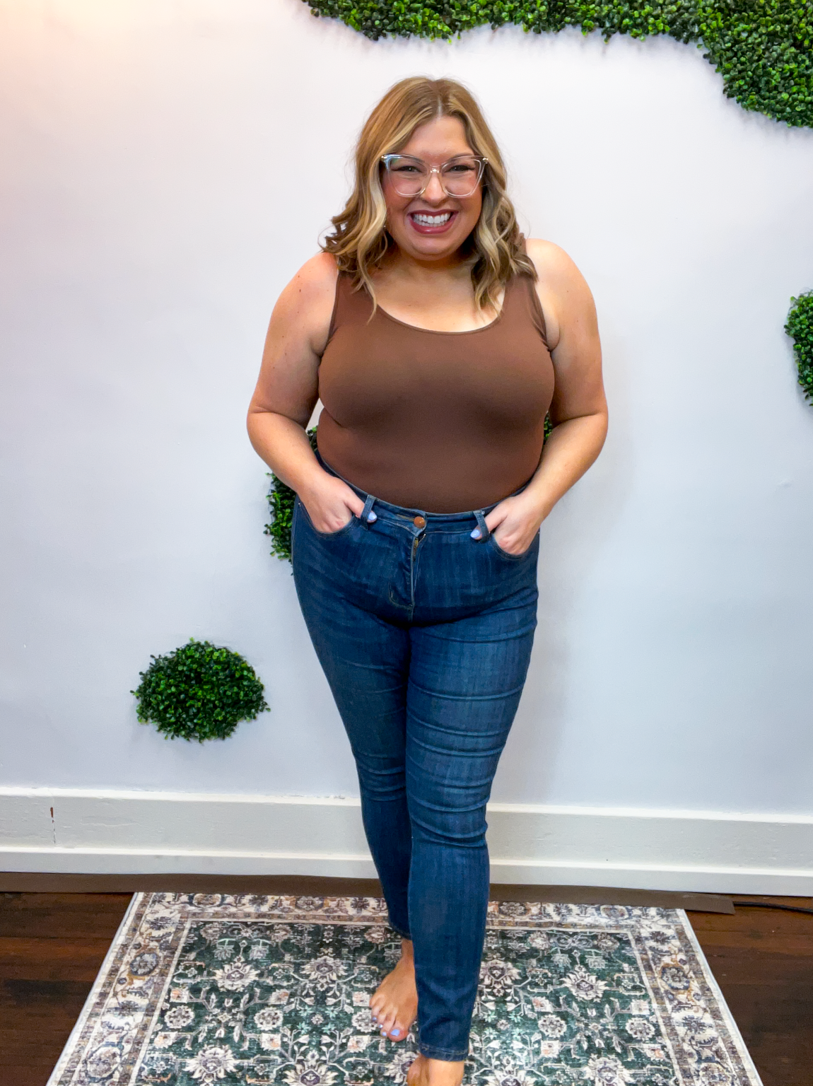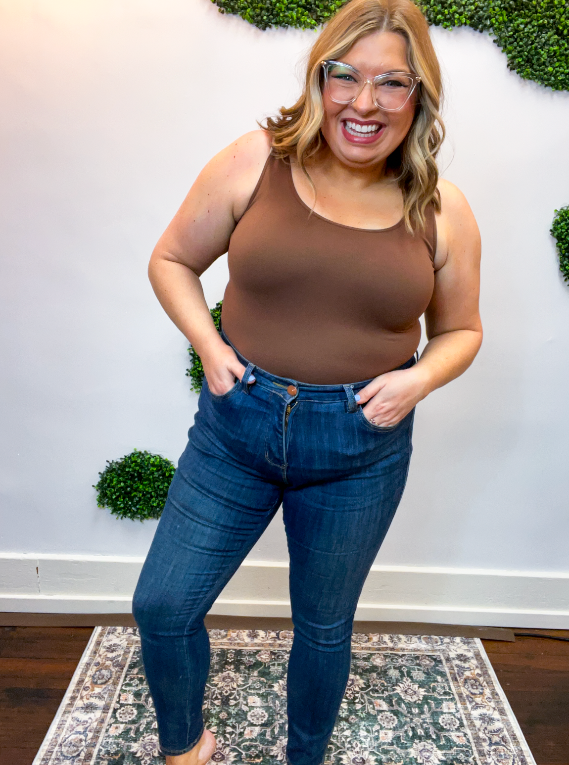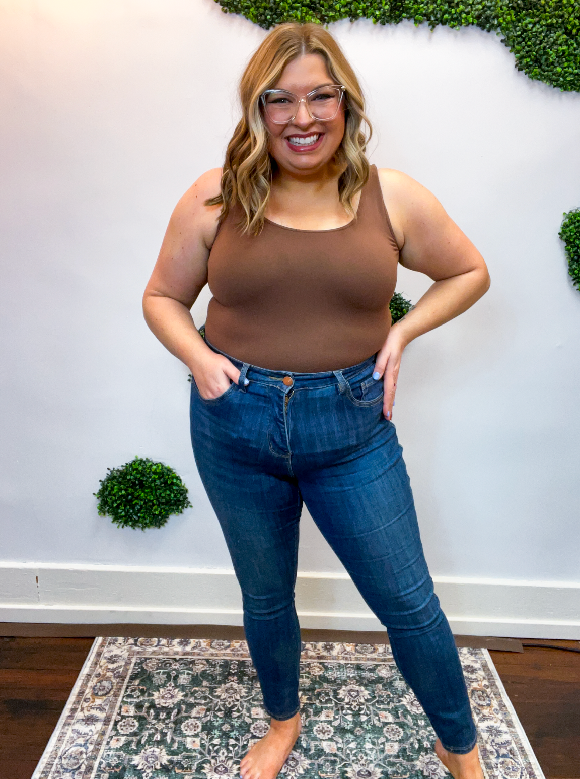 Built-in tummy control panels offer a little extra confidence (we love a subtle assist 🙌), while the classic 1-button closure, zipper, and 5-pocket construction keep things timeless and practical. Made with a soft stretch denim blend, they hold their shape beautifully and are made to last — a true wardrobe staple you can count on.