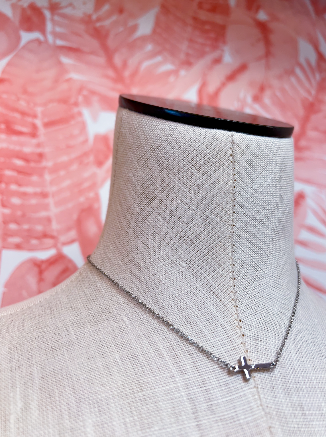 The sideways cross has that modern, effortless feel that makes it work with anything in your closet. The slim silver chain keeps the whole look clean and simple, letting that little cross do all the talking without being overdone. Subtle, sweet, and just a little sentimental.