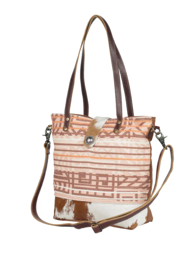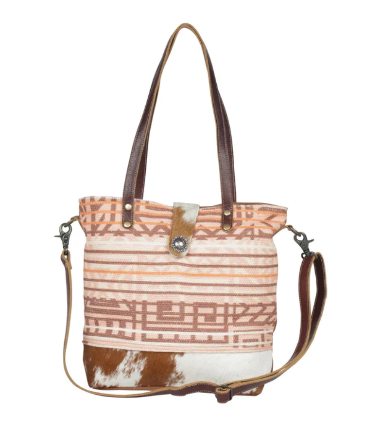 With an eclectic pattern in shades of tea rose pink and brown, this tote bag will help you pull off a perfectly feminine look with a girl-next-door feel.