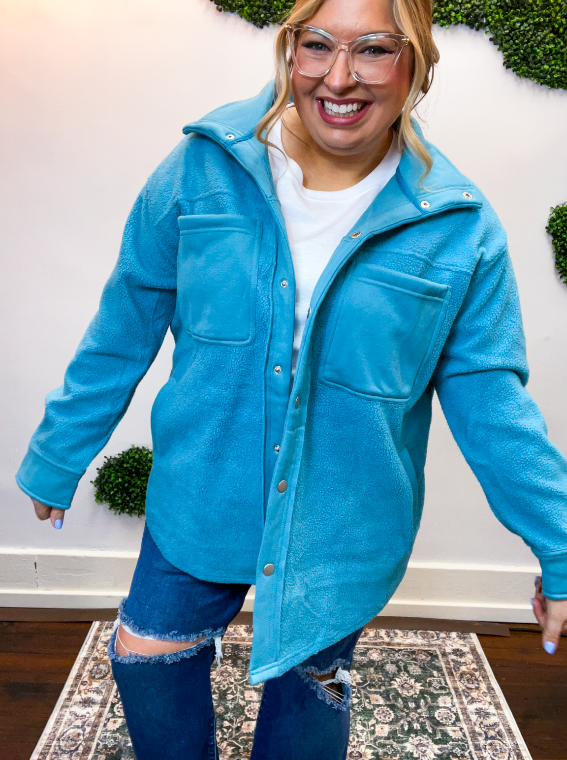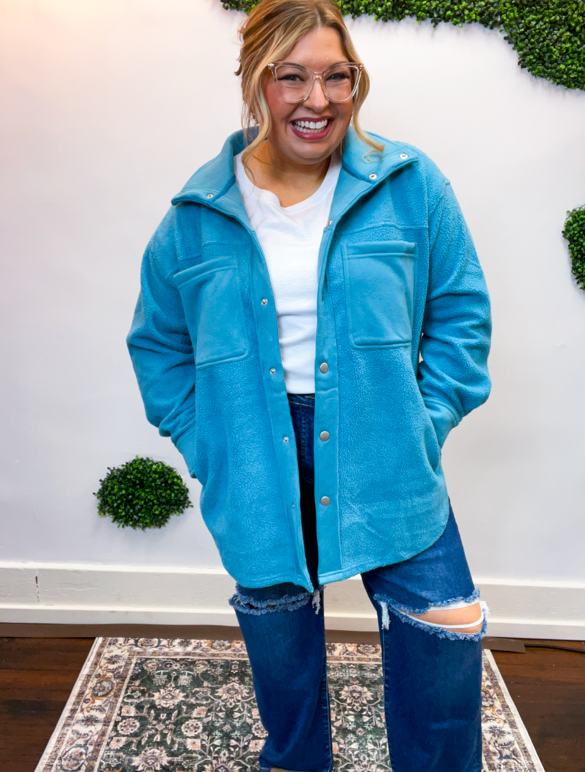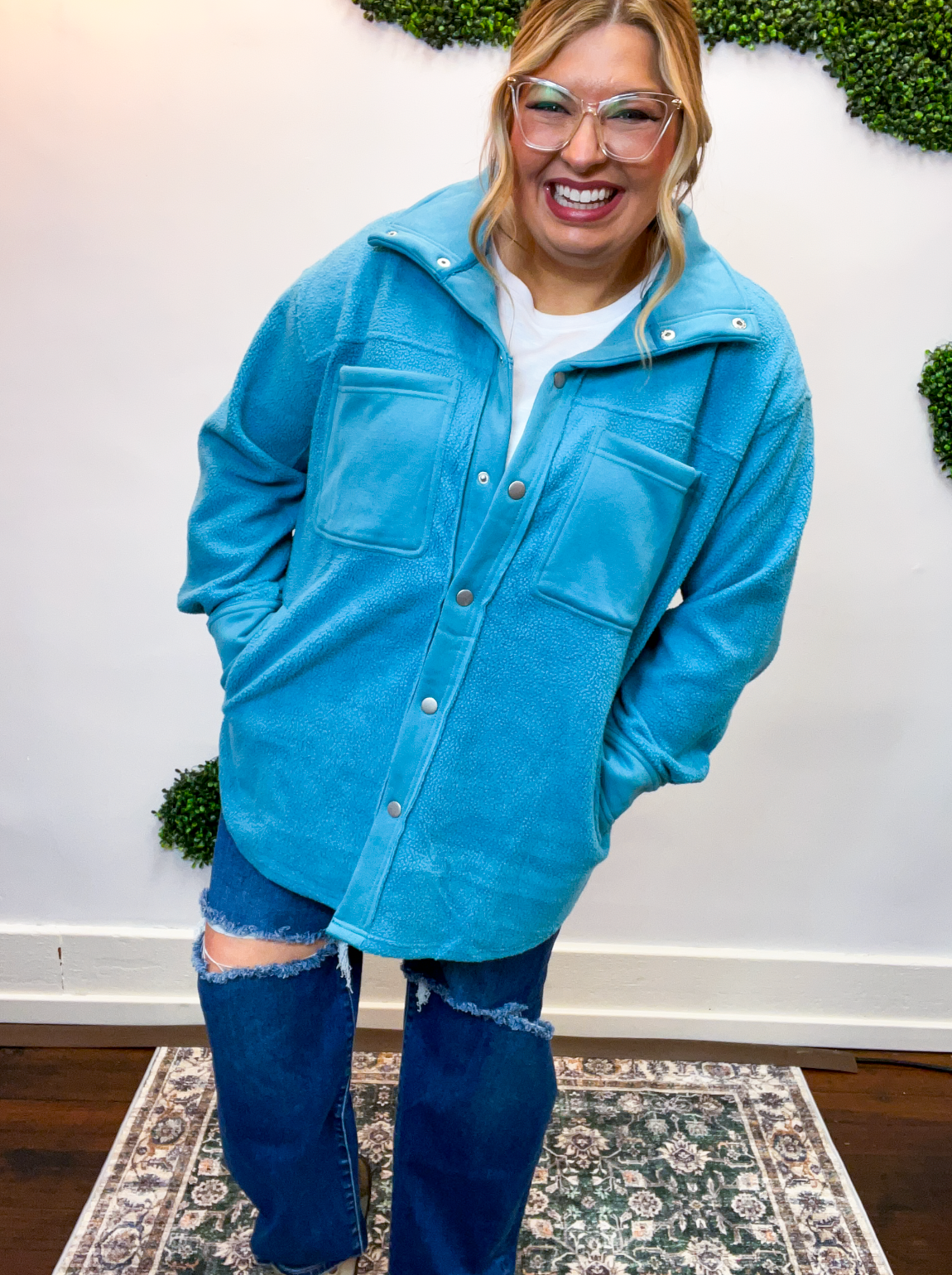 The high neck gives you that extra snuggle factor, while the snap-front buttons make it a true throw-on-and-go favorite. Add in two roomy front pockets, a curved hem, and a relaxed fit… and you’ve got the kind of jacket you’ll keep reaching for all season long.