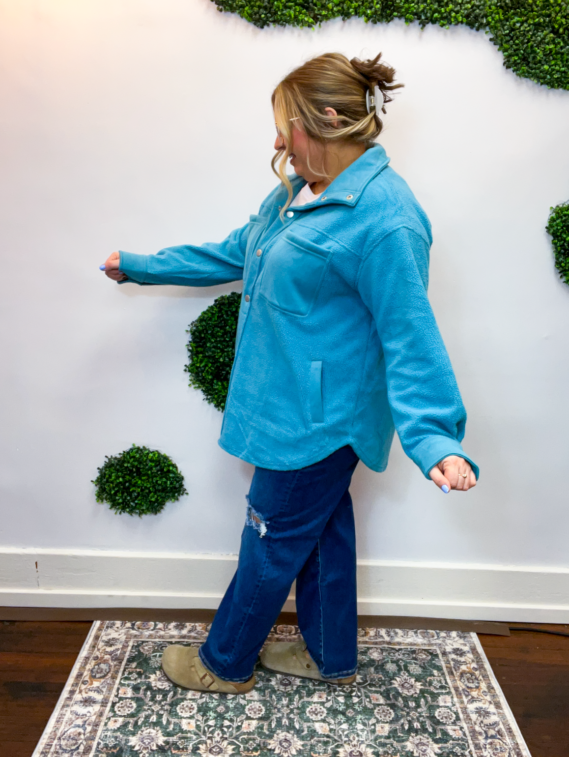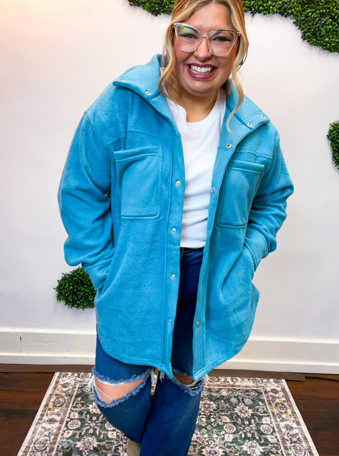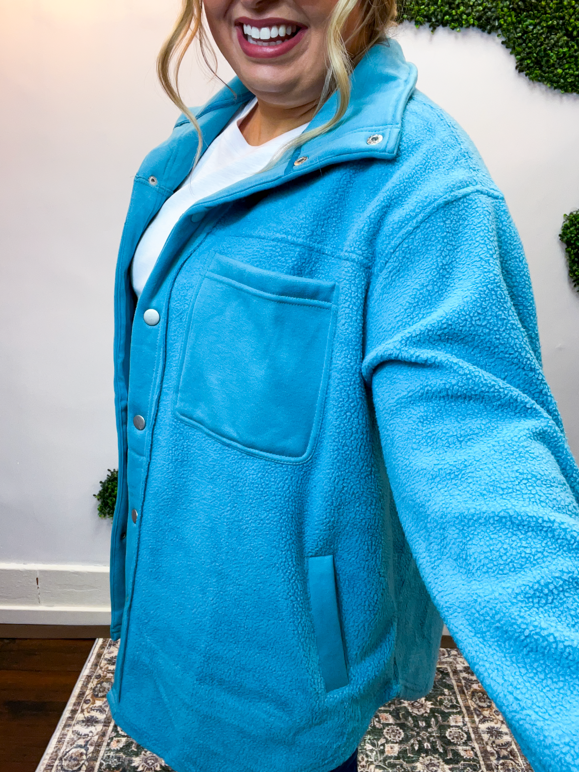 The high neck gives you that extra snuggle factor, while the snap-front buttons make it a true throw-on-and-go favorite. Add in two roomy front pockets, a curved hem, and a relaxed fit… and you’ve got the kind of jacket you’ll keep reaching for all season long.
