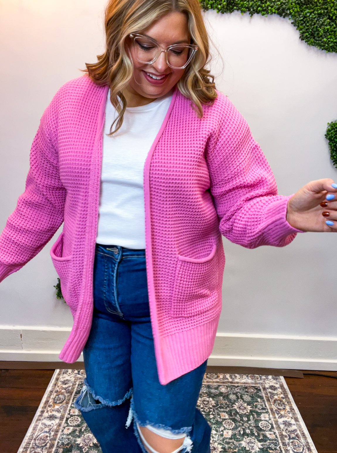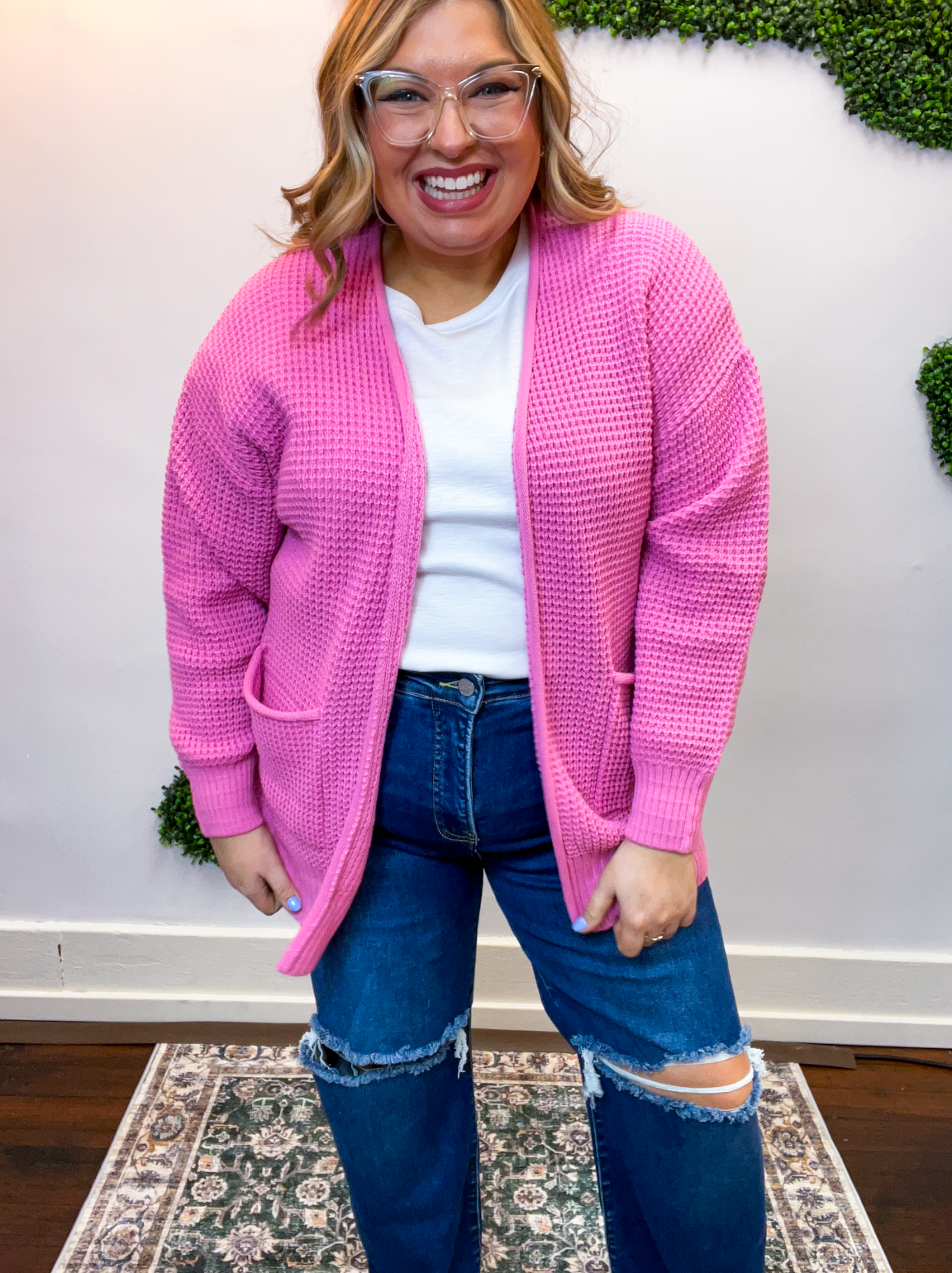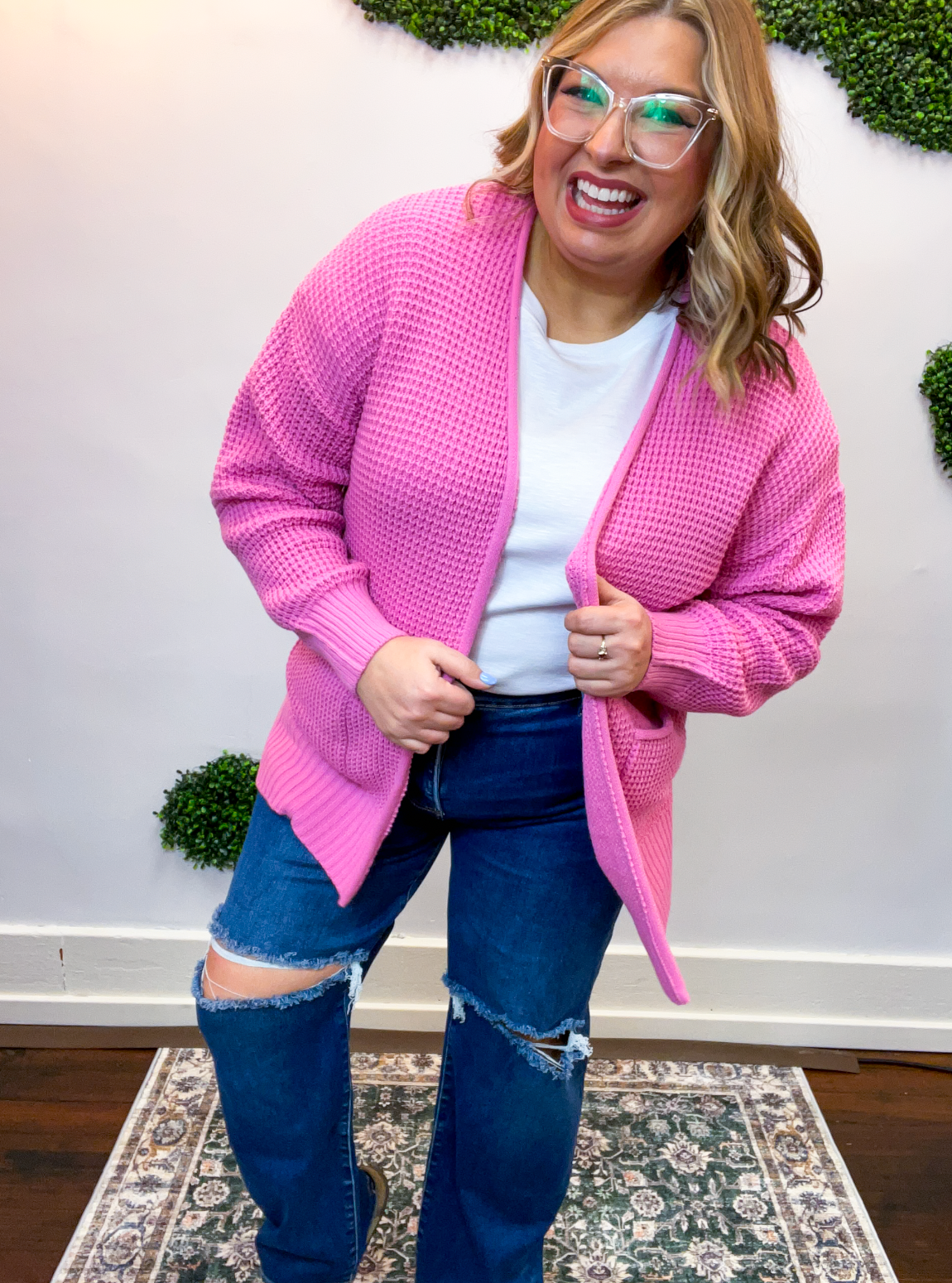 The Everyday Waffle Knit Cardigan is the cozy layer you’ll keep reaching for all season long. Crafted from a low-gauge waffle knit, it strikes that perfect balance—midweight and warm without ever feeling bulky.