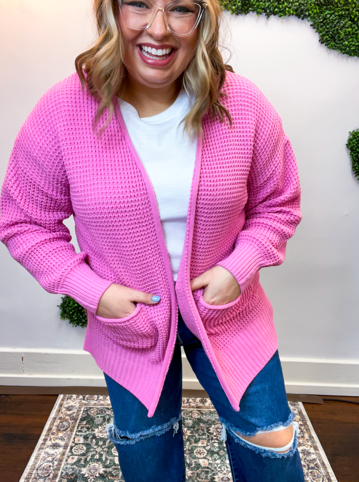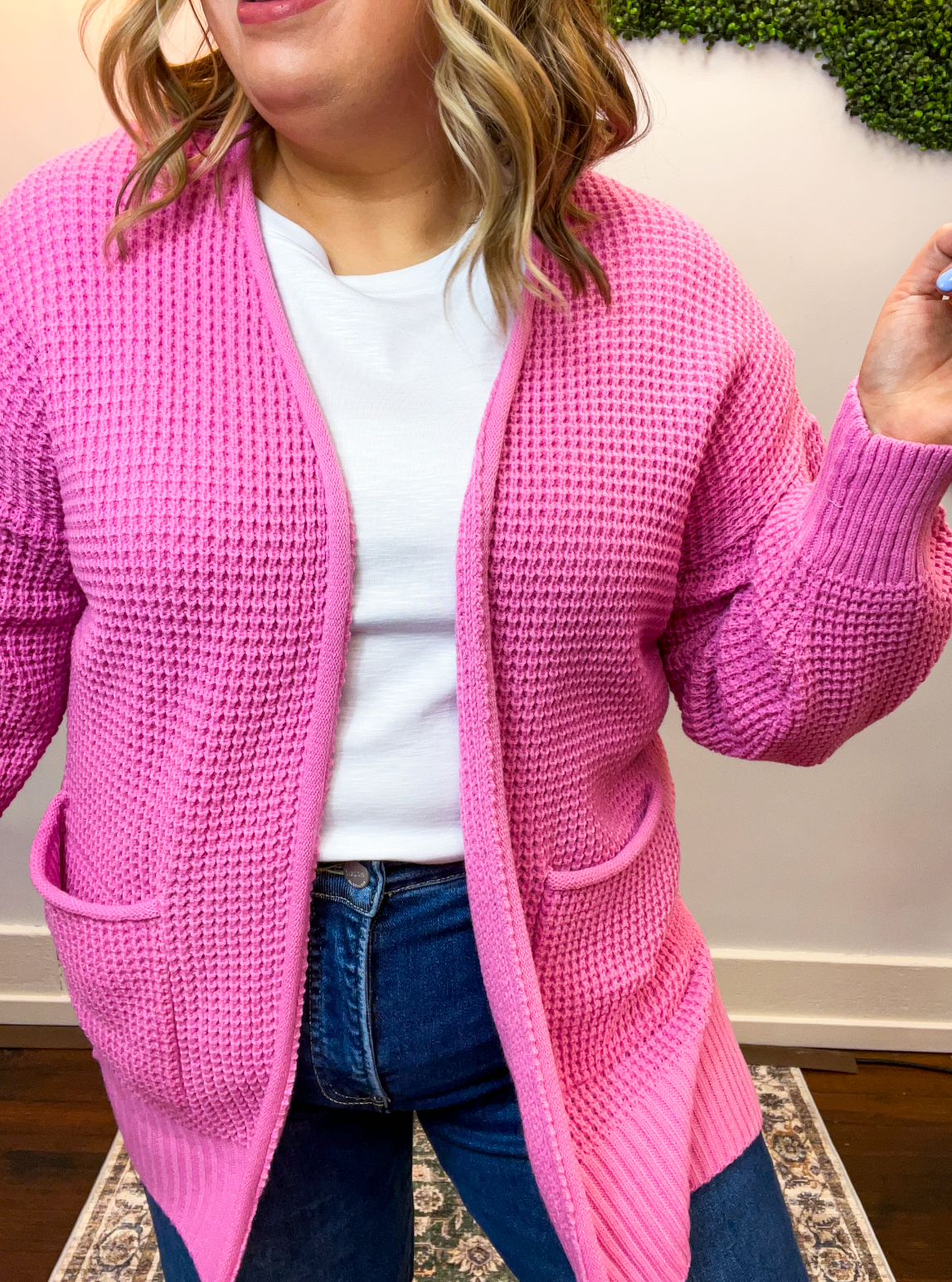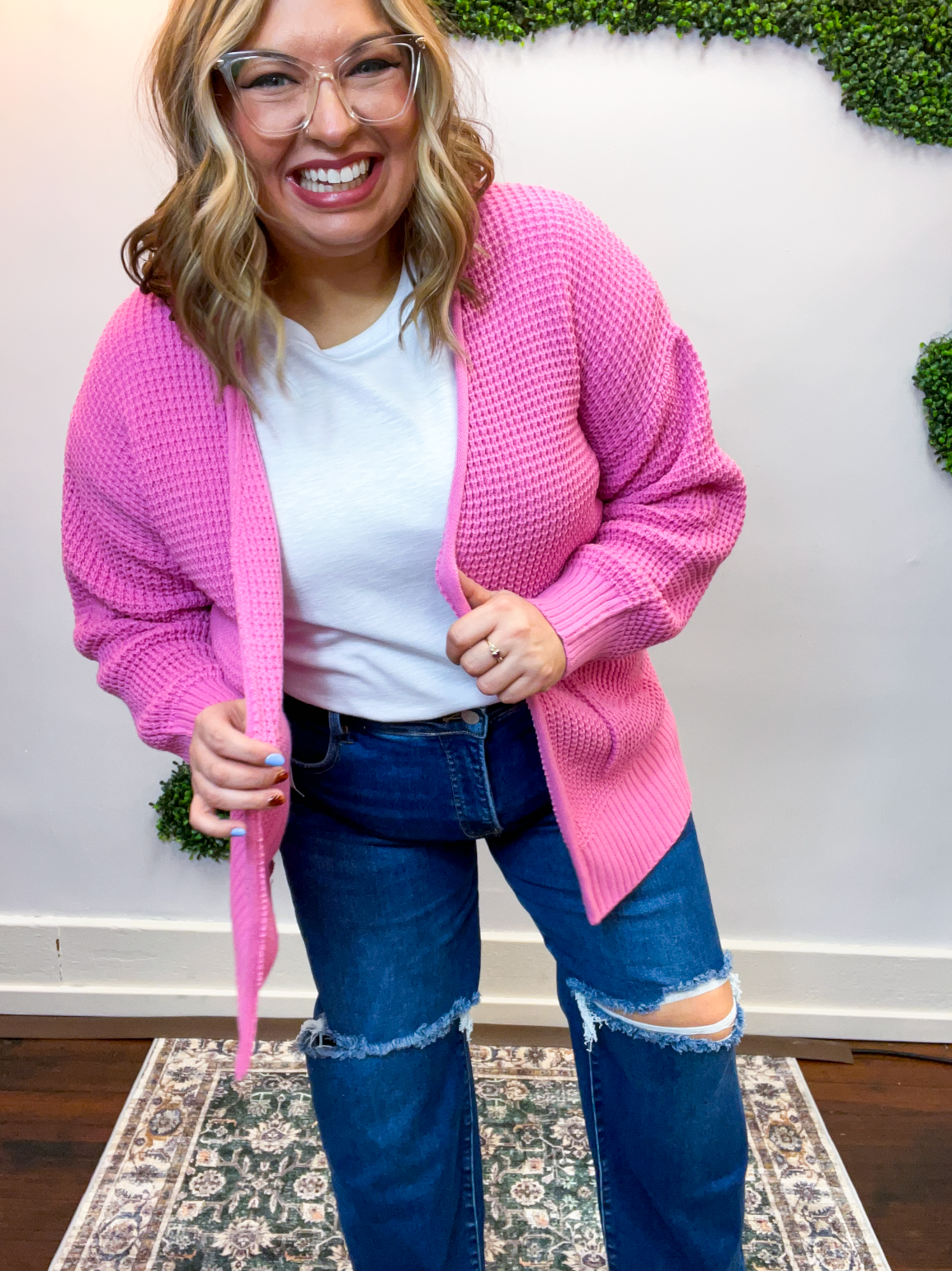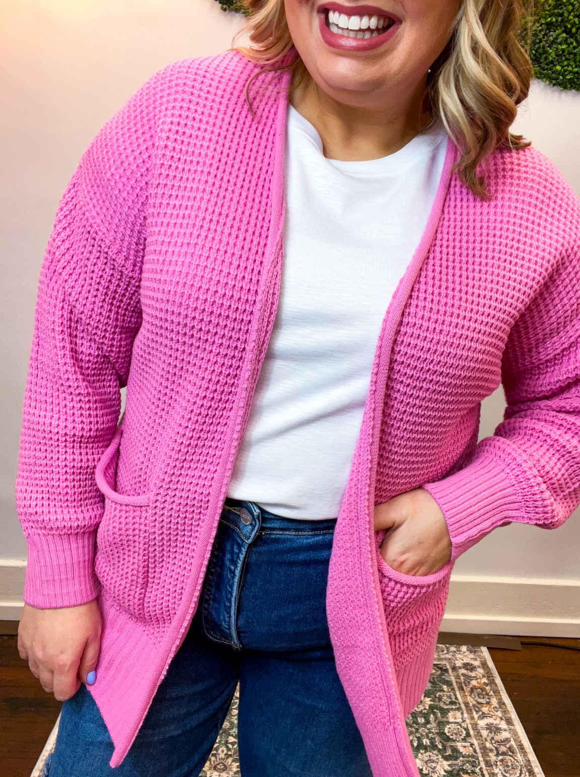The Everyday Waffle Knit Cardigan is the cozy layer you’ll keep reaching for all season long. Crafted from a low-gauge waffle knit, it strikes that perfect balance—midweight and warm without ever feeling bulky.