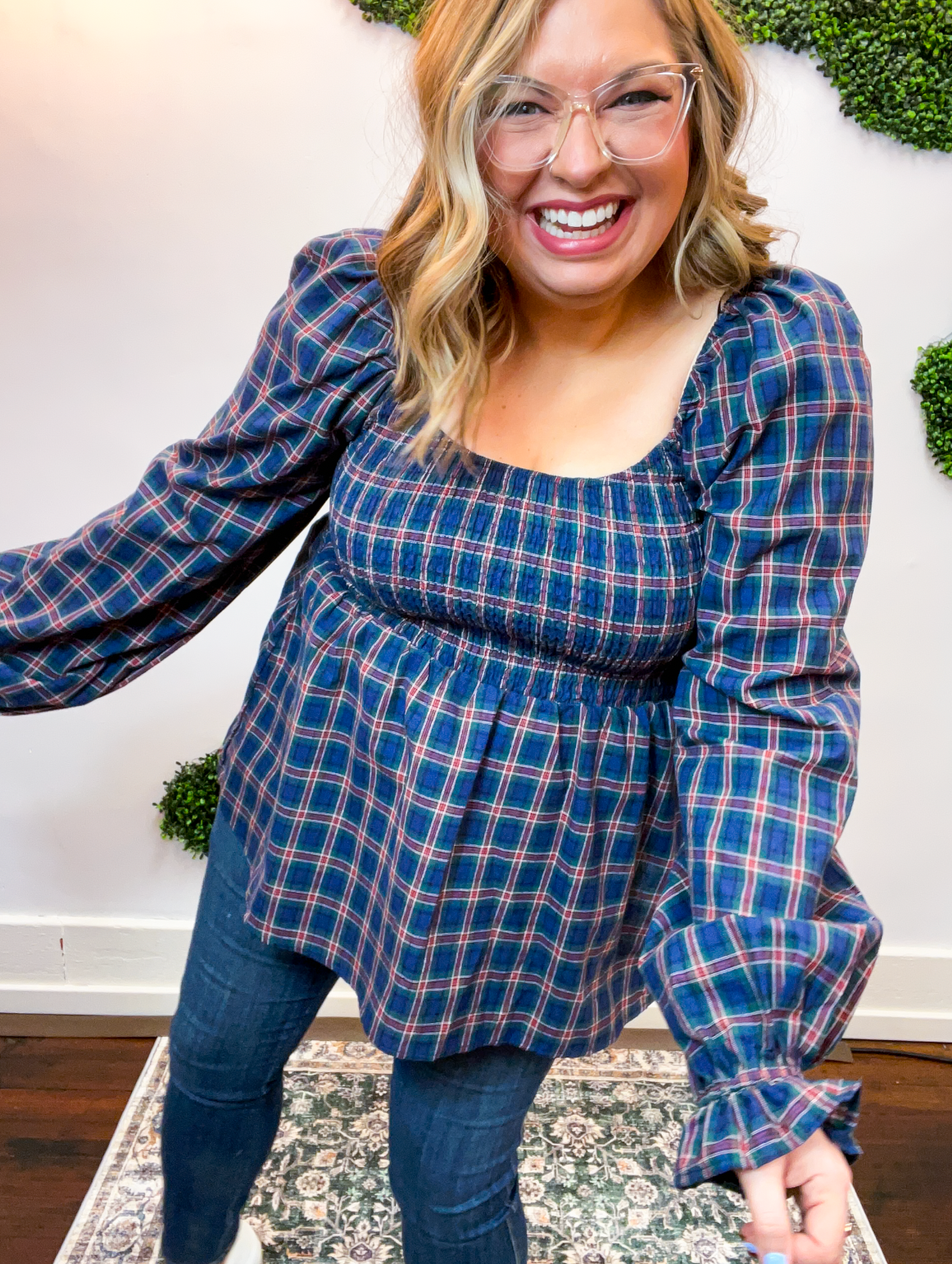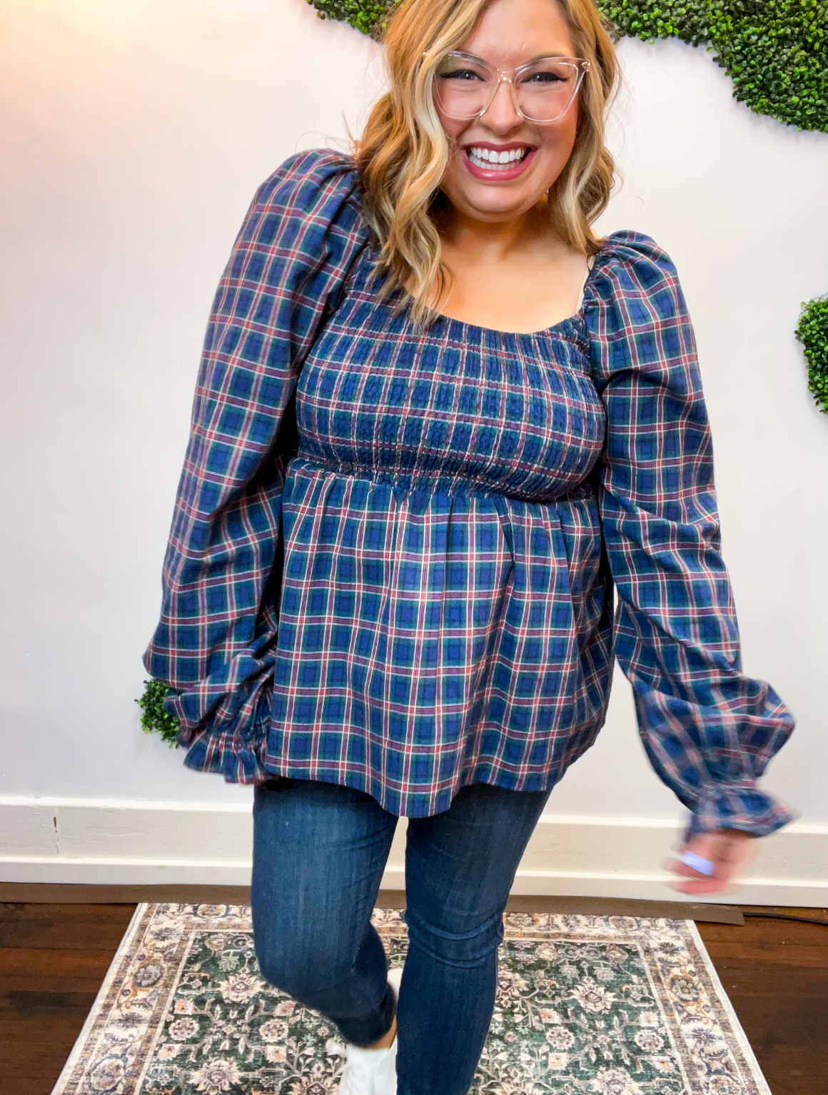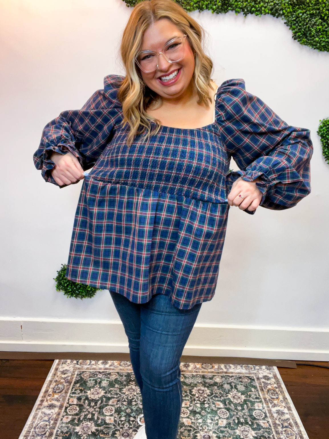 With its sweet puff sleeves and classic plaid pattern, this top is made for pumpkin patch strolls, coffee dates, and all your favorite fall moments. Pair it with jeans and boots for an easy outfit that feels as good as it looks.