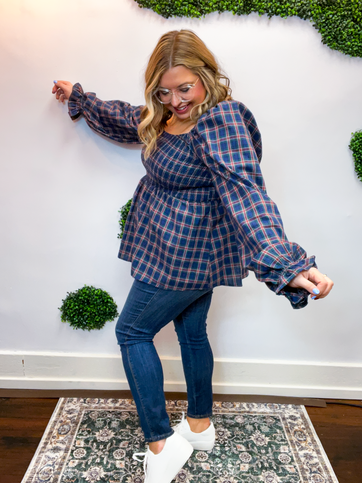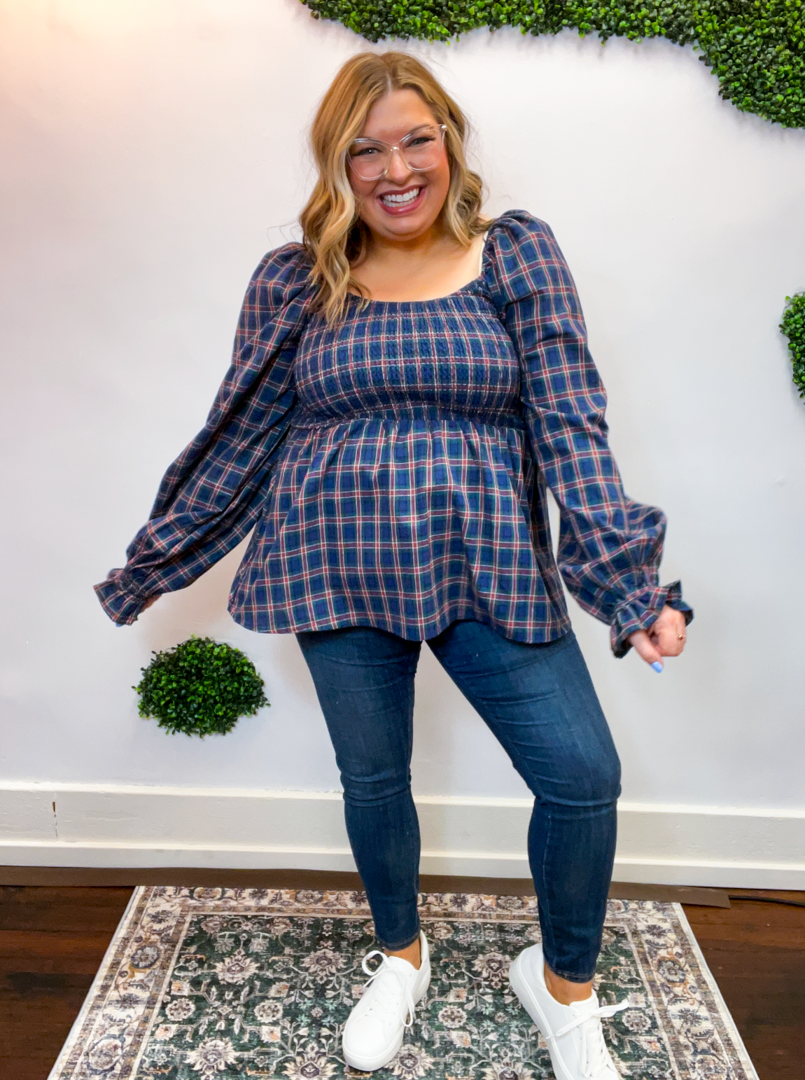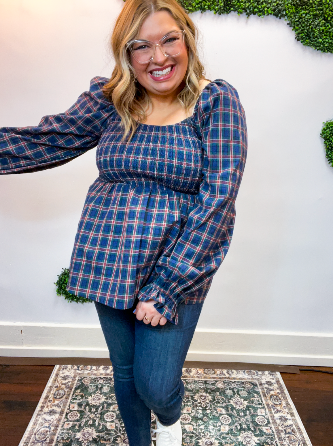 With its sweet puff sleeves and classic plaid pattern, this top is made for pumpkin patch strolls, coffee dates, and all your favorite fall moments. Pair it with jeans and boots for an easy outfit that feels as good as it looks.