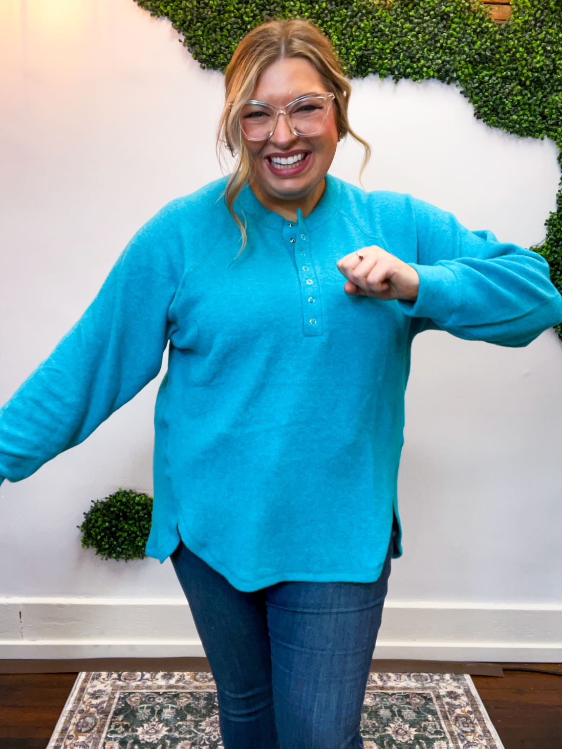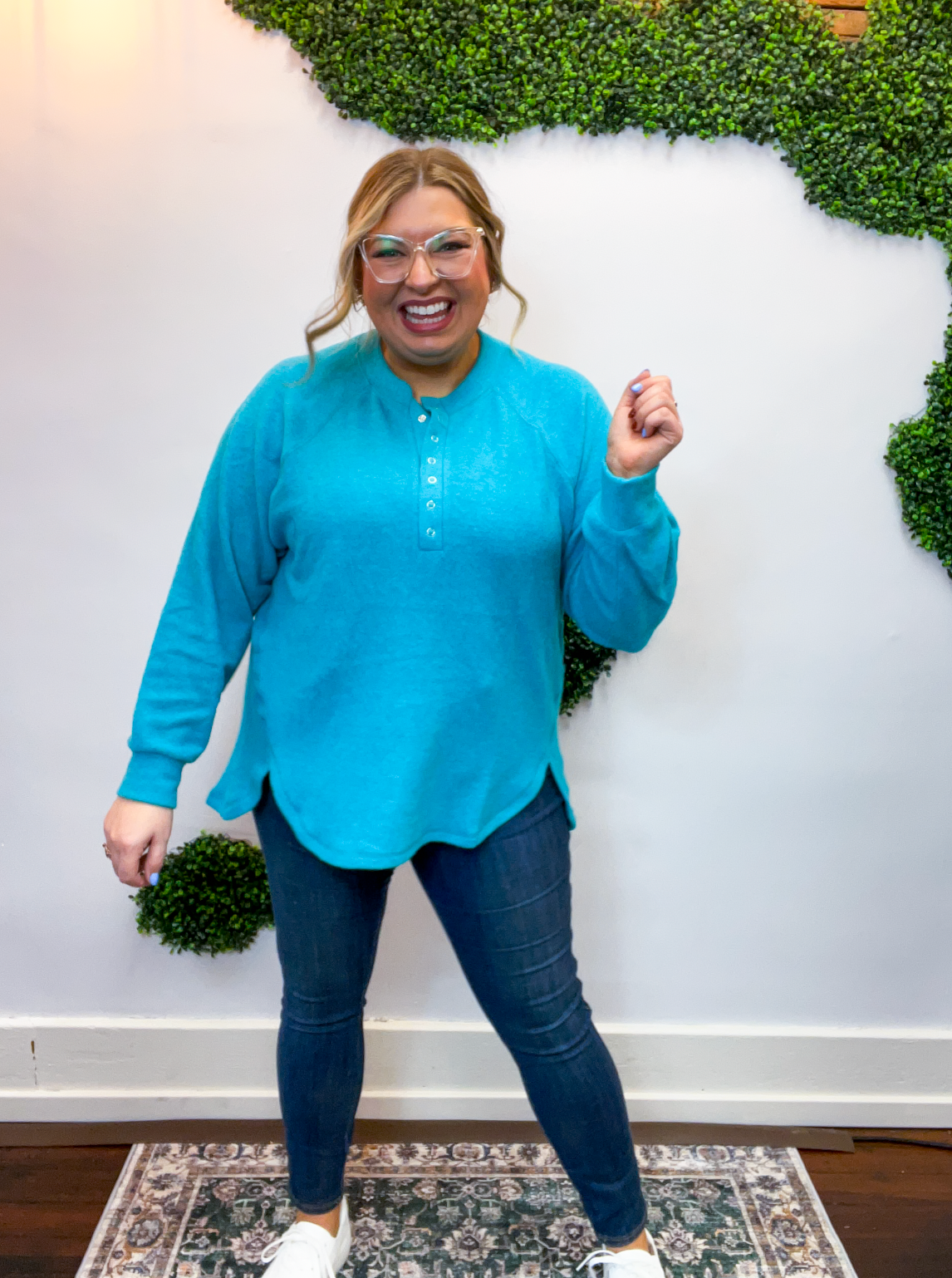 The Maplewood Button Henley Sweater is cozy meets classic. Made from soft brushed melange hacci knit, it has a relaxed, oversized fit that feels effortless while still looking put together. The 7-button henley placket adds the perfect touch of detail, and the hi-low round hem makes it easy to style—front tuck it or let it flow loose with your favorite jeans or leggings.