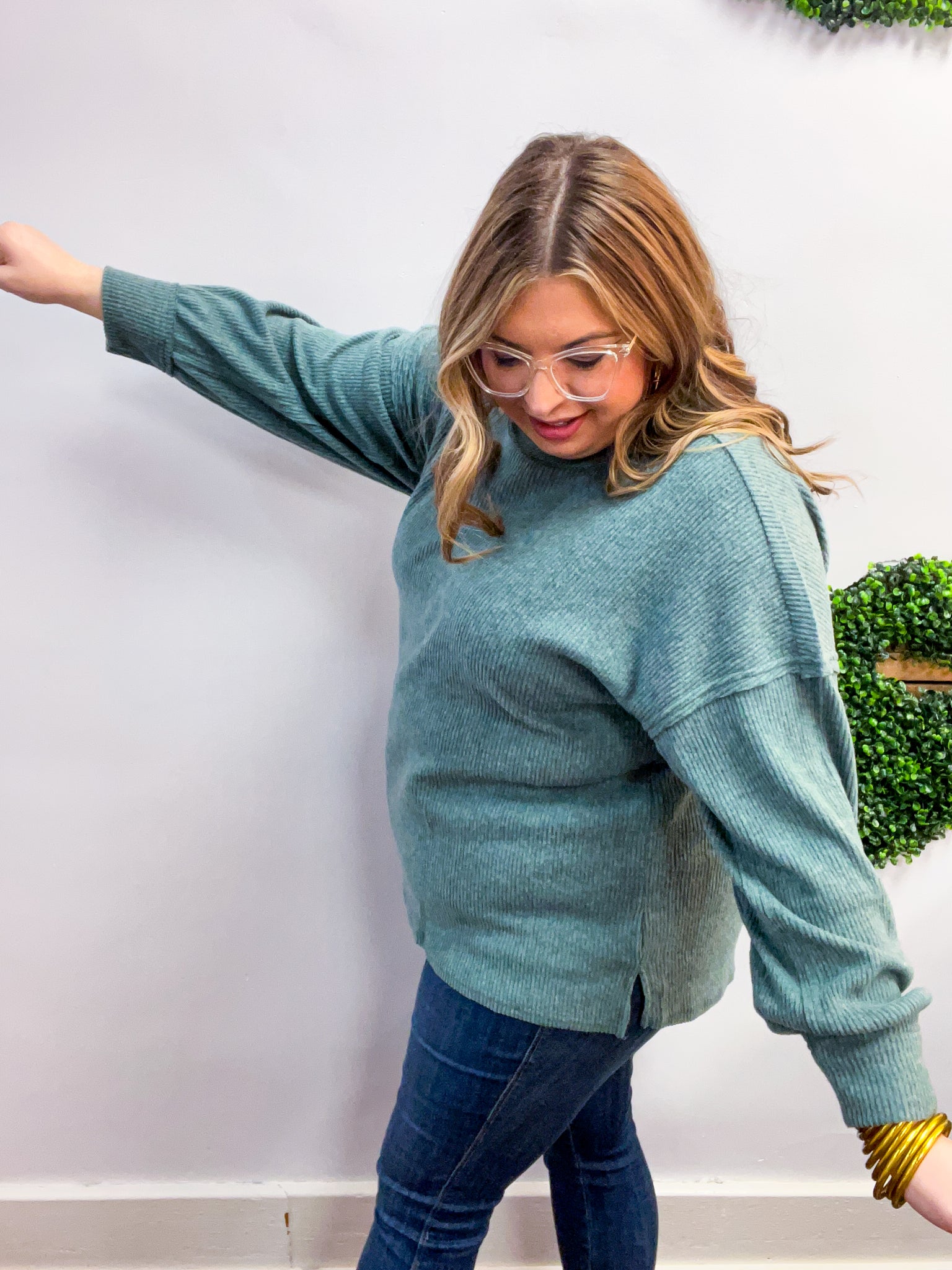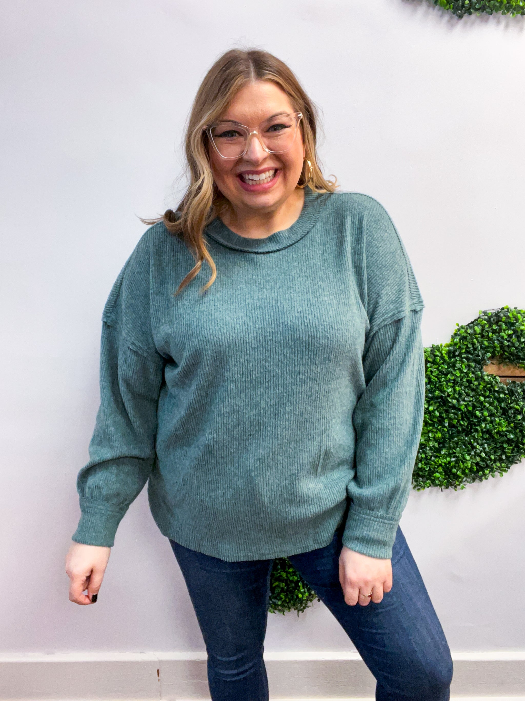 Meadow Ridge Drop Shoulder Sweater in Jade