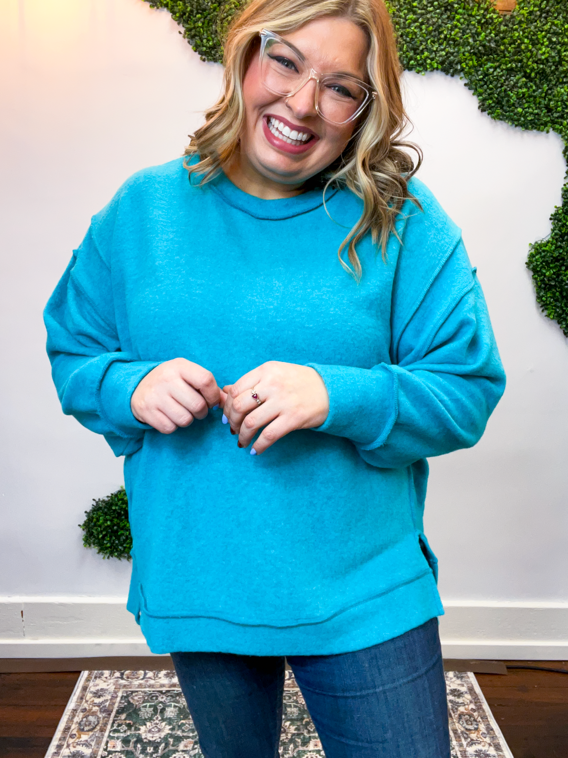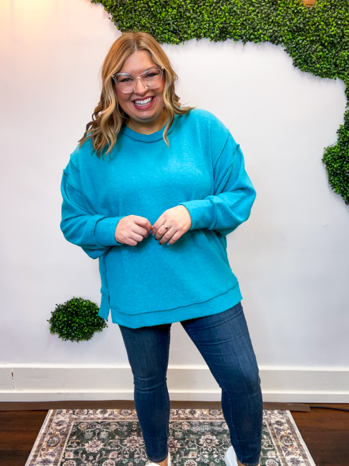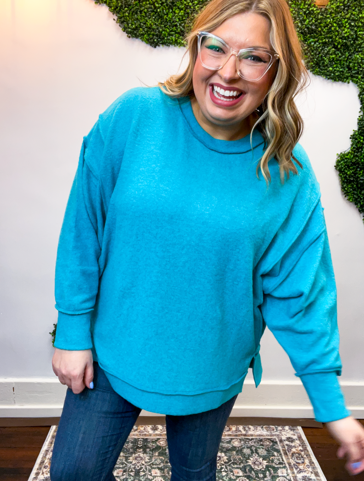 The Warm Wishes Pullover is pure cozy comfort for chilly days ahead. Made from soft brushed melange hacci knit, it’s lightweight, stretchy, and oh-so-soft — basically the kind of top you’ll reach for every time the temps drop.