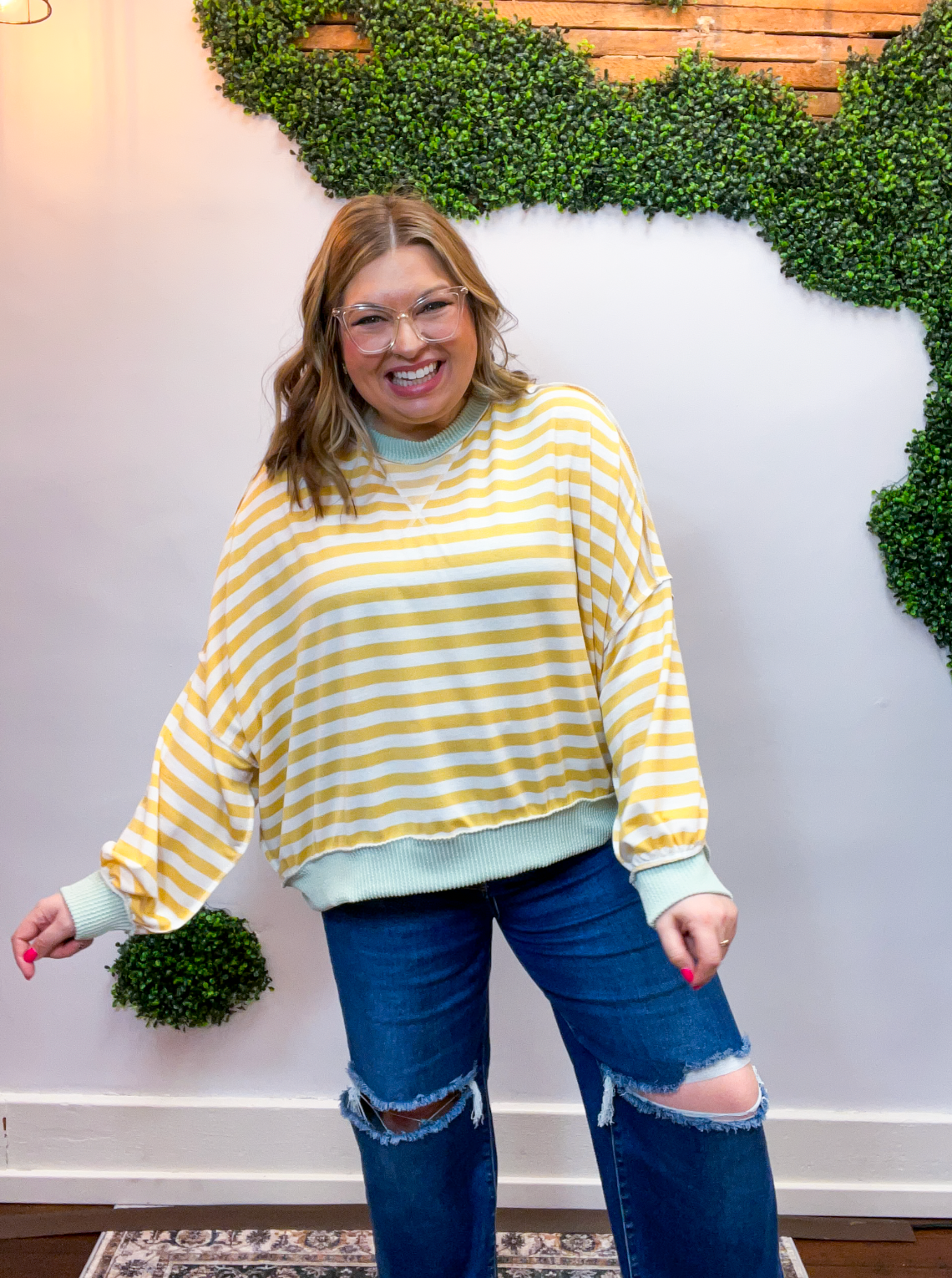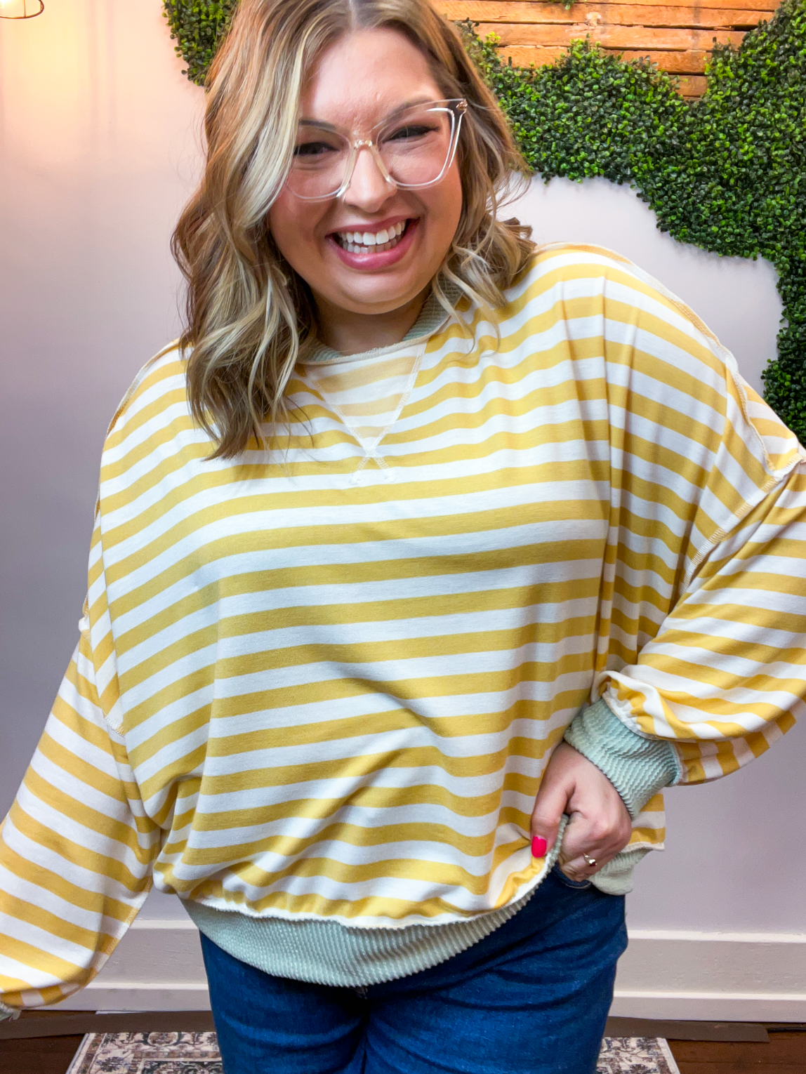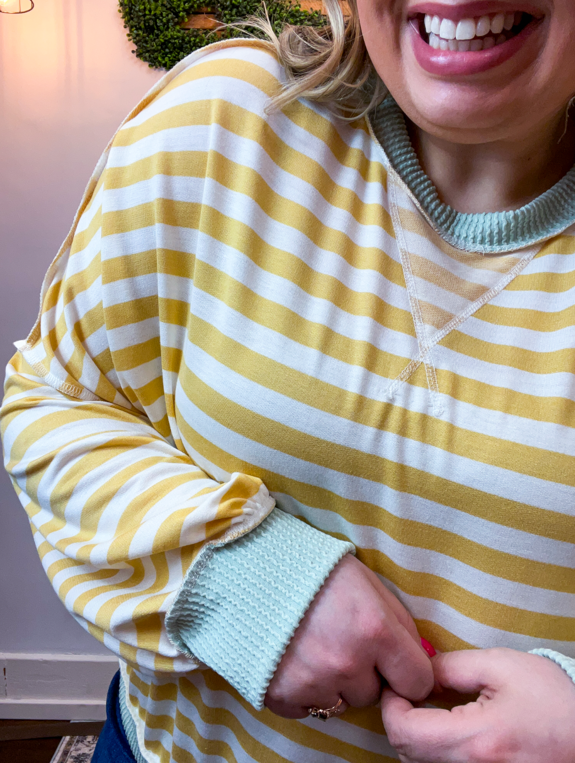 The Farmhouse Stripes Pullover is laid-back comfort with a pop of personality. This stone & grey combo that’s as timeless as it is fun. With its crew neckline (complete with a subtle triangle stitch), drop shoulders, and oversized fit, this pullover is made for easy, relaxed vibes.