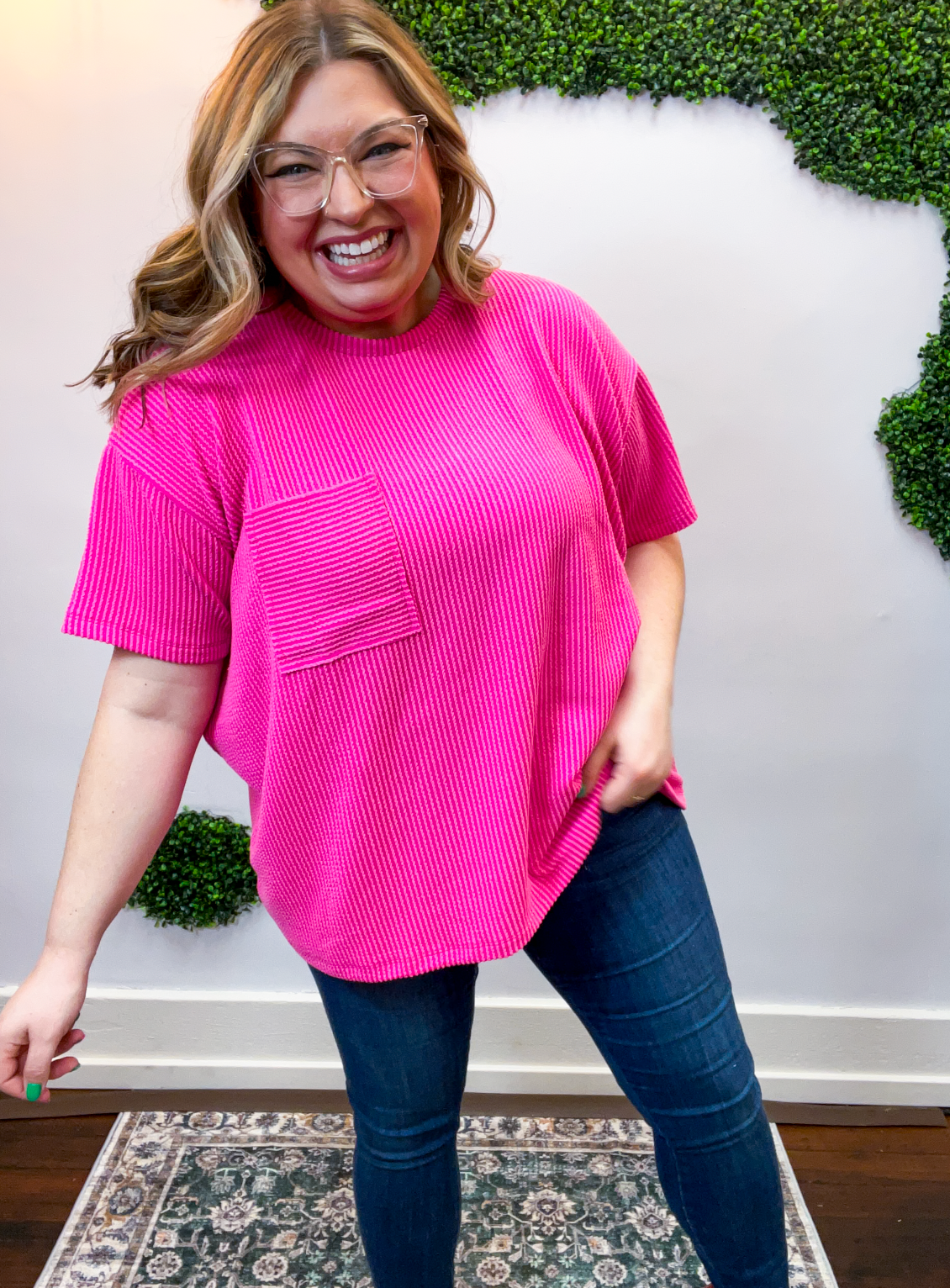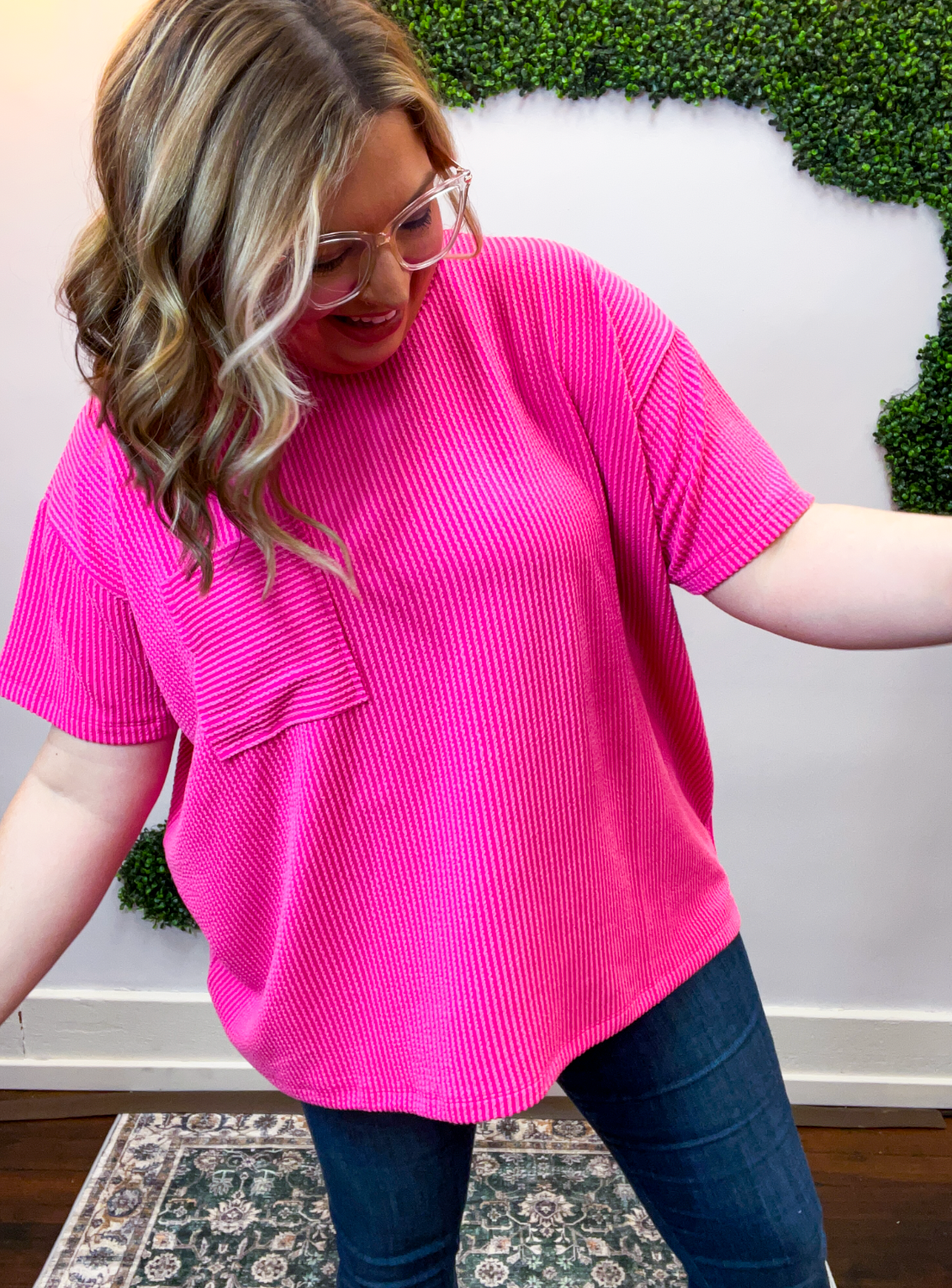 Ripple & Relax Pocket Top in Neon Hot Pink