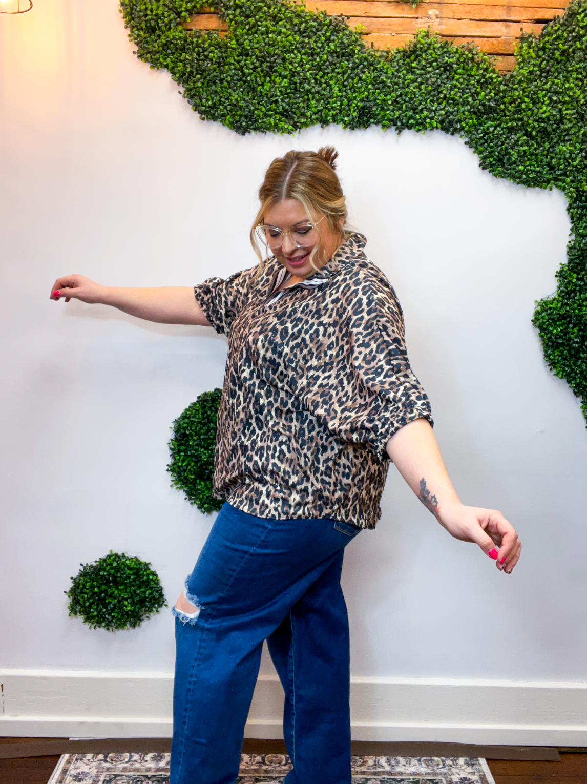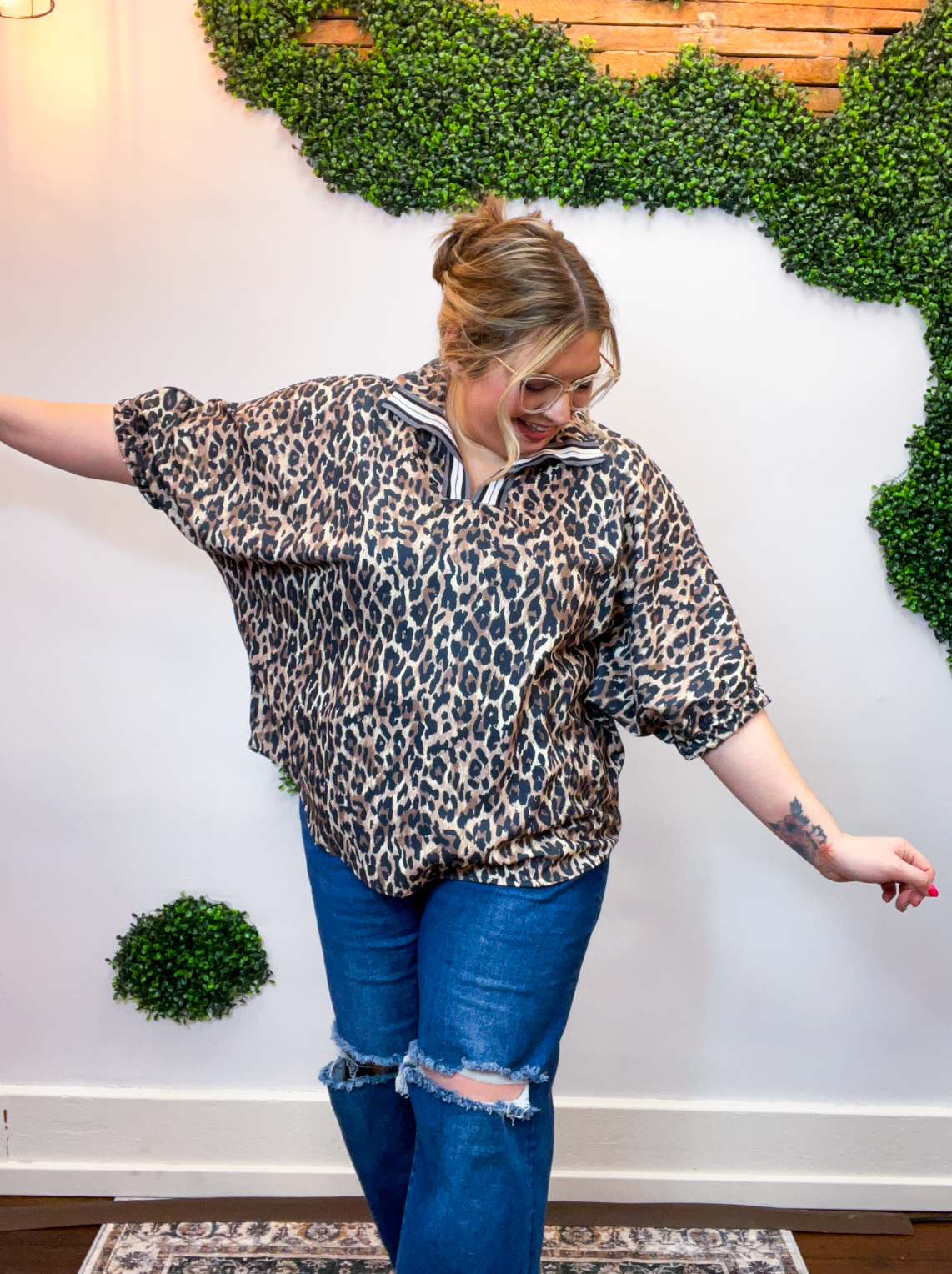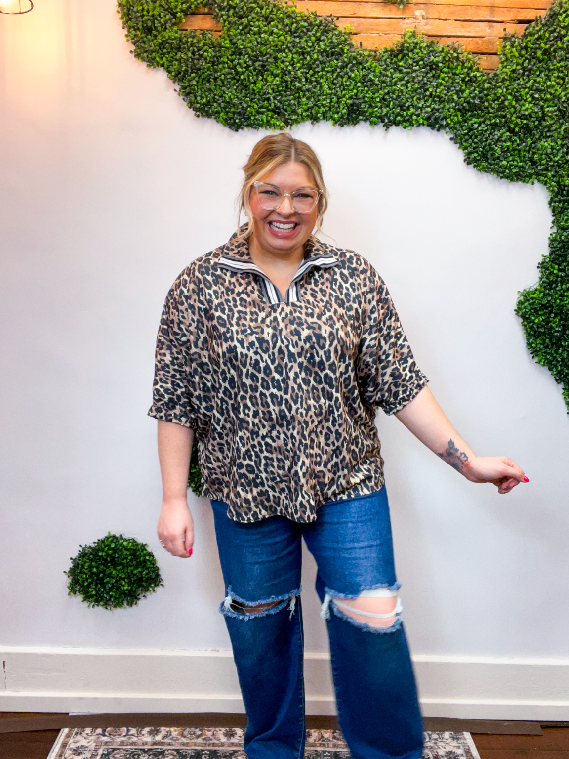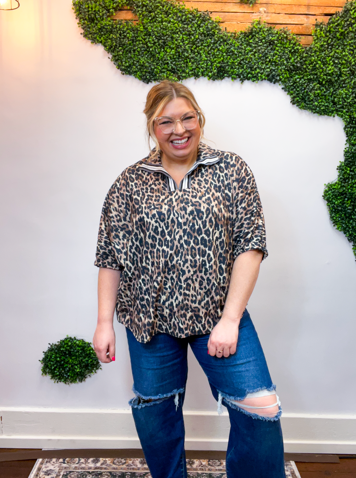 The Wild Card Stripe Collar Top is a total game changer — bold, effortless, and made for those days when you want to feel put together without overthinking it. The playful leopard print brings all the fun, while the striped taped collar and notch neckline steal the spotlight and give this top its standout style.