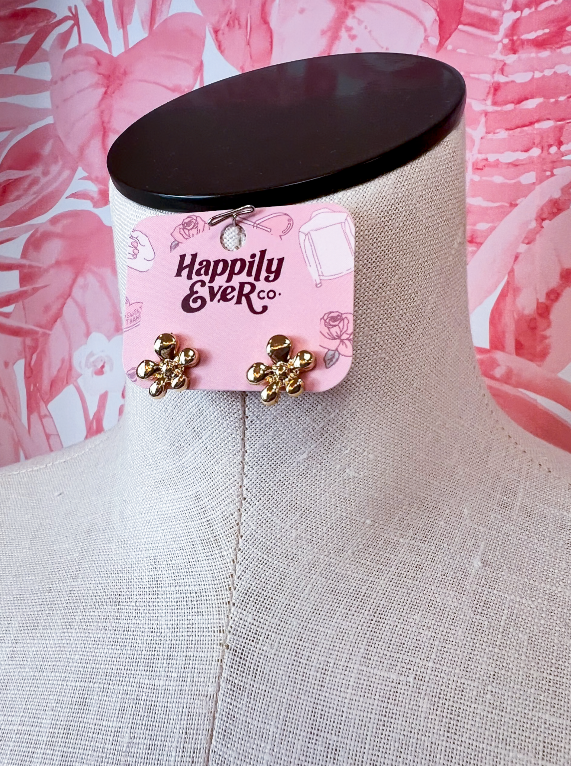 If you've been on the hunt for that perfect little statement stud that makes people stop and say "wait, where did you get those?" -- y'all, this is it. The Bubble Bloom Studs have the most adorable puffy rounded petal design that feels equal parts retro, modern, and just plain fun. That warm gold finish takes these from cute to absolutely irresistible.