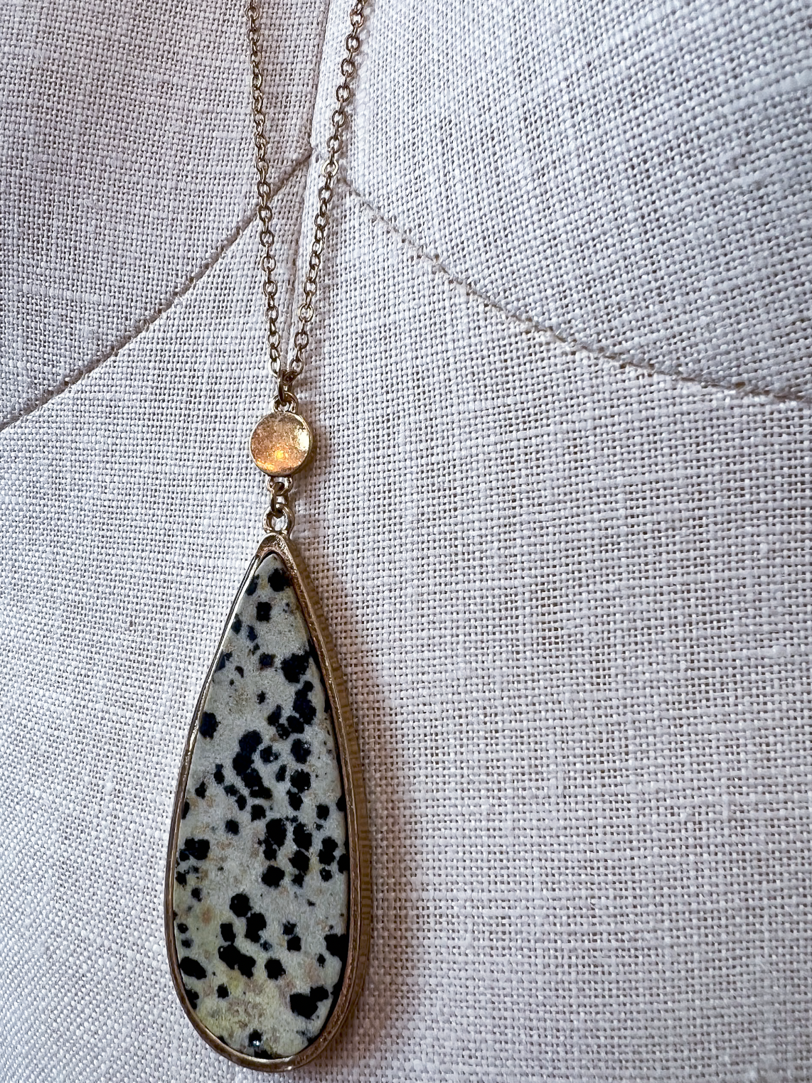 Dalmatian Jasper Teardrop Pendant Long Necklace *Final Sale*