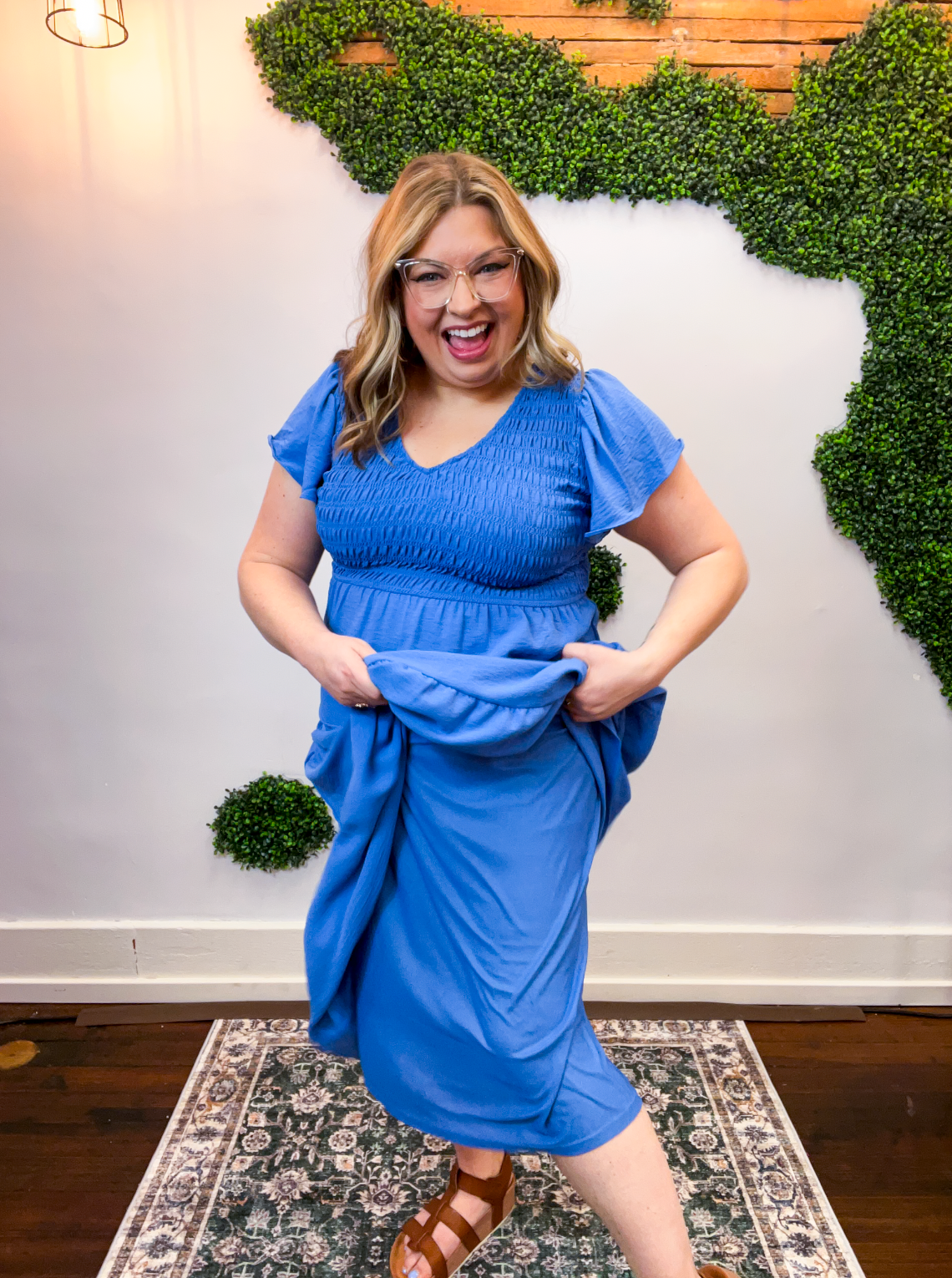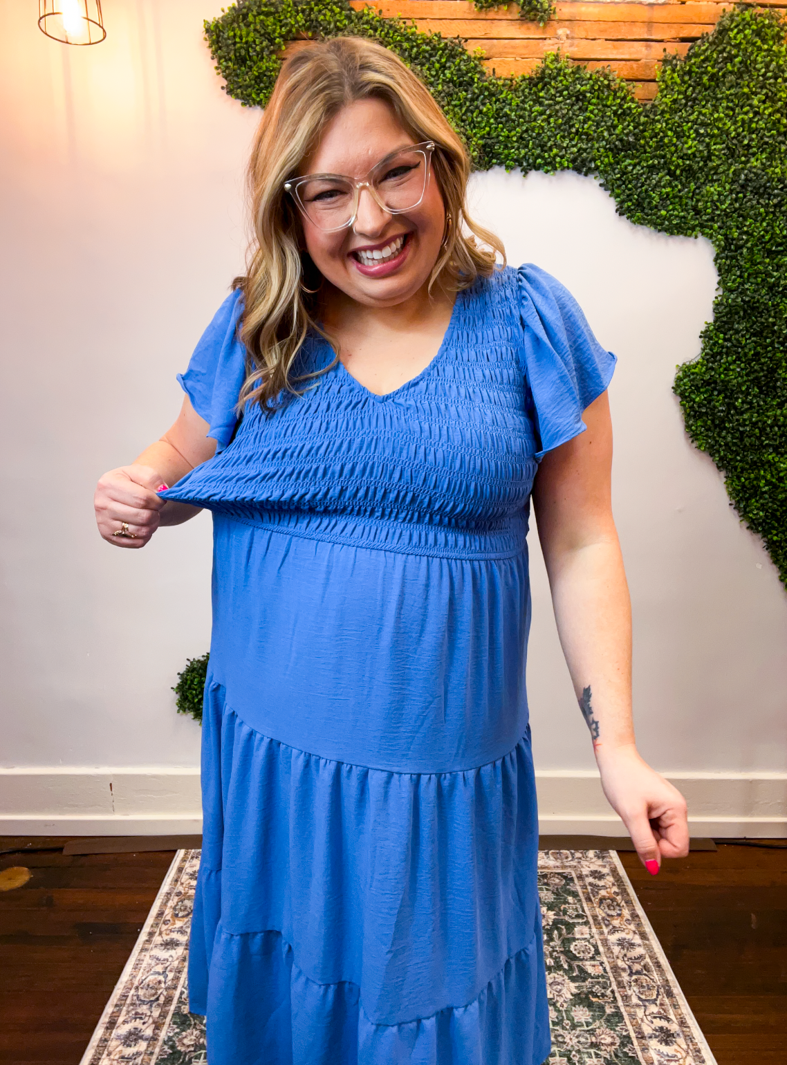 The flutter sleeves add the prettiest touch, while the tiered skirt brings just the right amount of movement (hello twirl factor 💫). Fully lined for confidence and coverage, this midi-to-maxi length beauty is perfect for church, brunch, weddings, baby showers, or any day you want to feel a little extra lovely without sacrificing comfort.