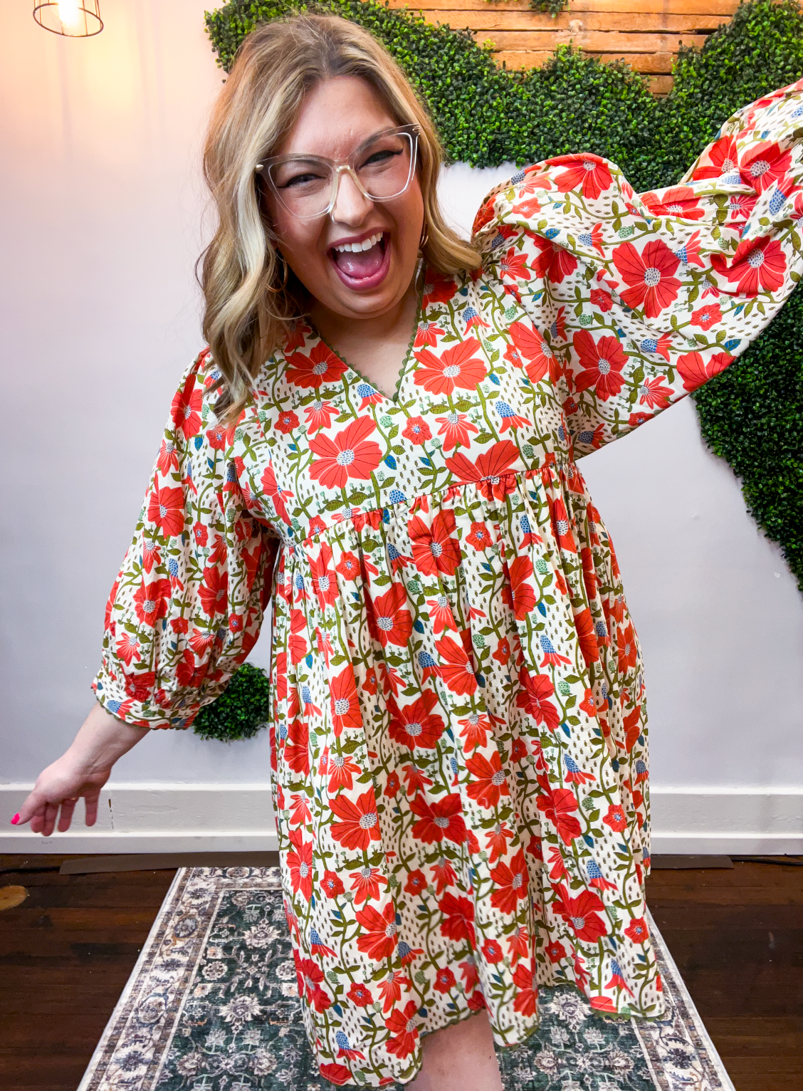 The Petals on Broadway Dress is one of those rare pieces that instantly feels special the moment you slip it on. From the cheerful floral print to the easy, throw-on-and-go fit, this dress checks every box for feeling confident, comfortable, and completely yourself. It’s hands-down one of Sarah’s all-time favorites for a reason.