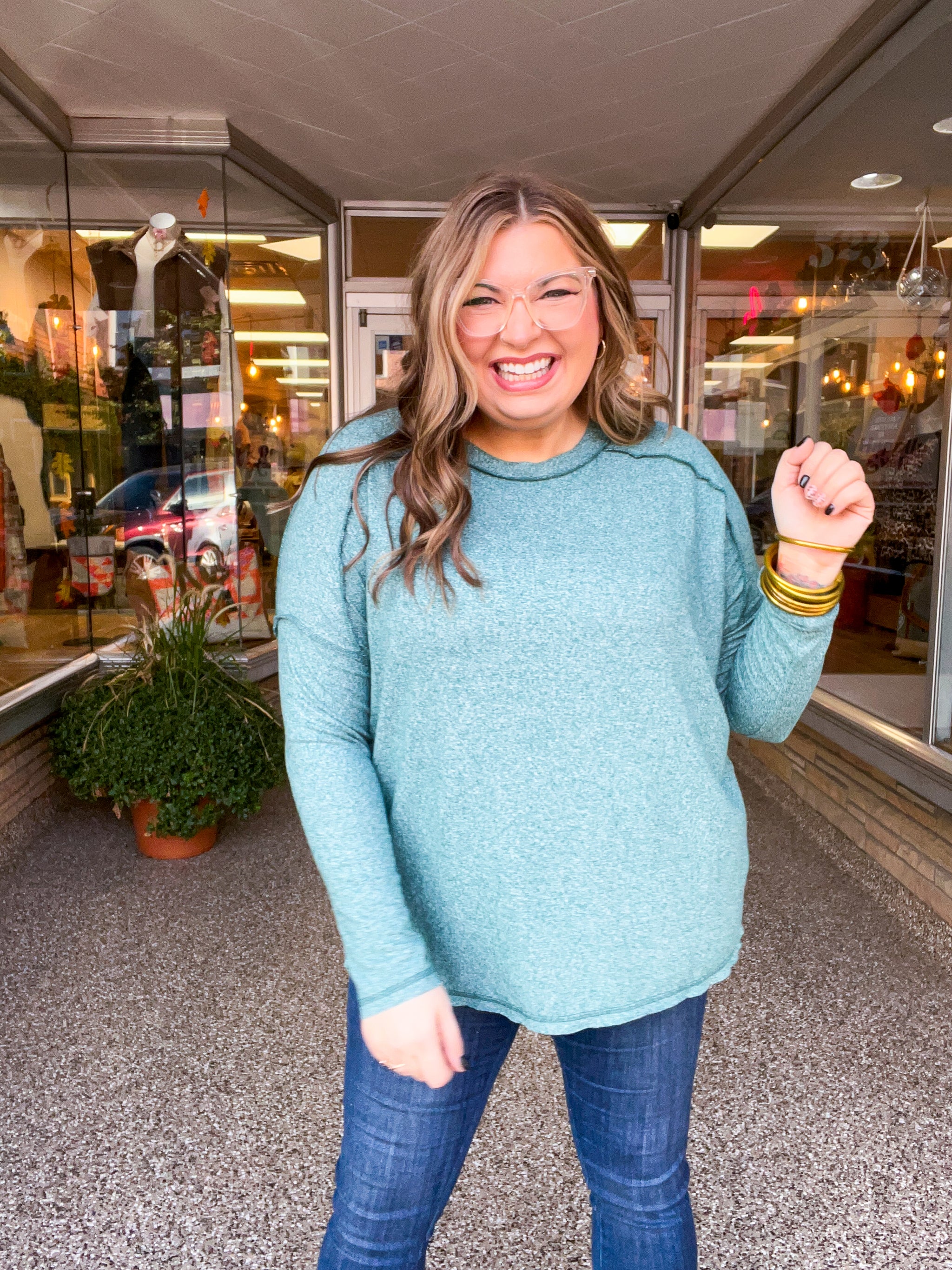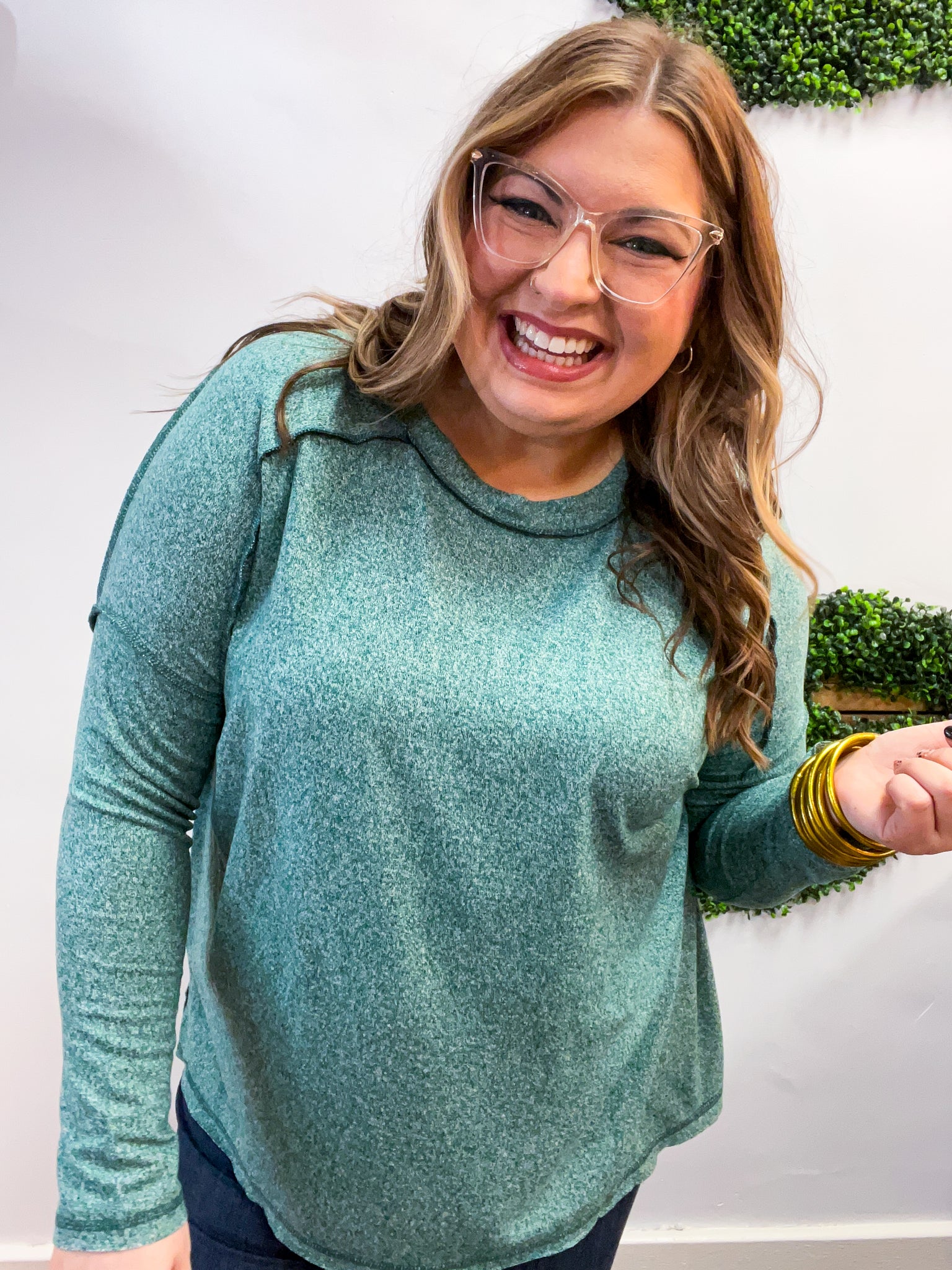 The Seams Just Right Long Sleeve Top is made for easy, throw-on-and-go days. Crafted from soft hacci knit, it’s cozy without the bulk and relaxed without ever looking sloppy. Exposed seams add that laid-back edge, while the hi-low hem with side slits makes it effortless to pair with jeans, leggings, or even layered under a vest.